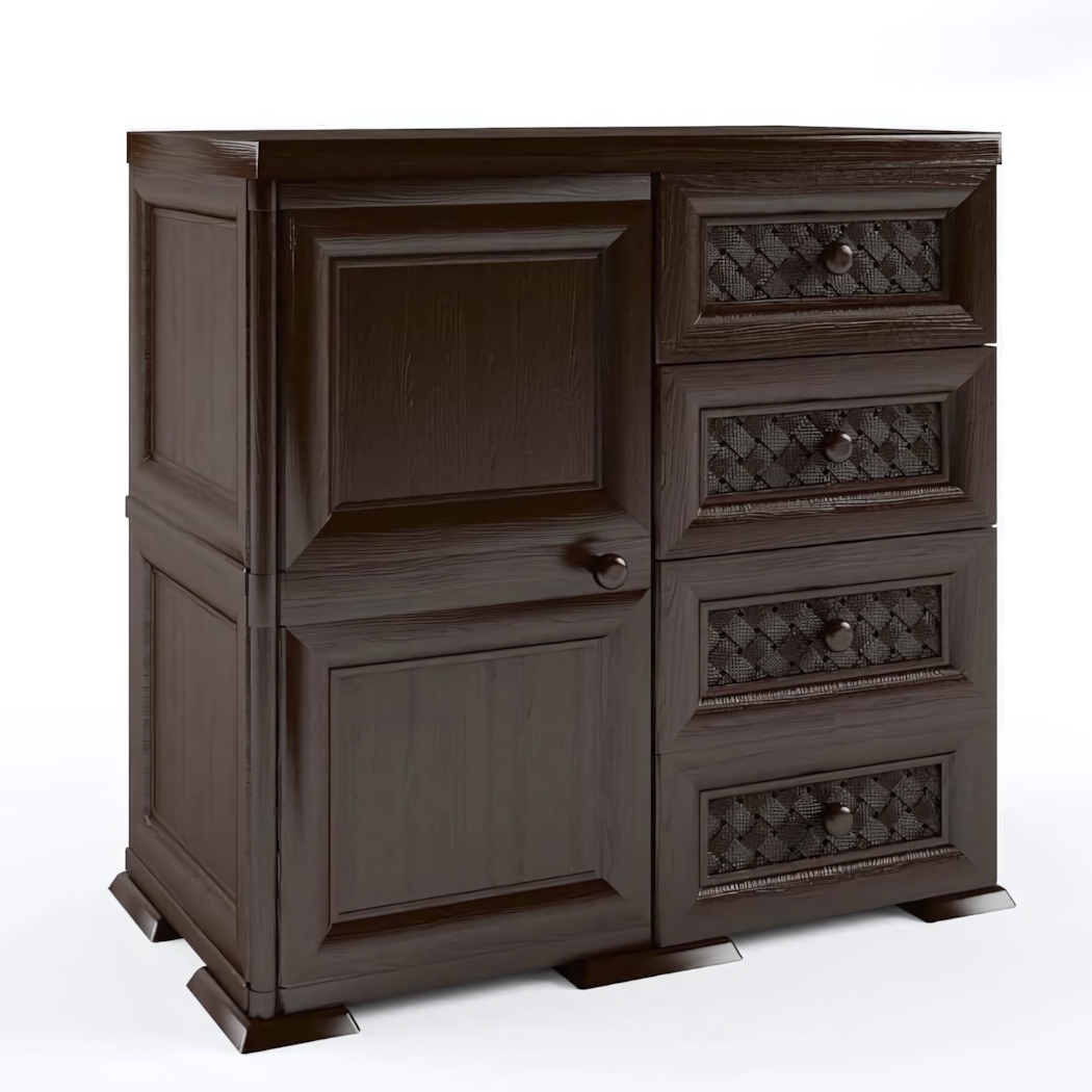 Комод пластиковый 'УЮТ' 4 ящика/1 дверца, шоколадный, 810х420х835, влагостойкий