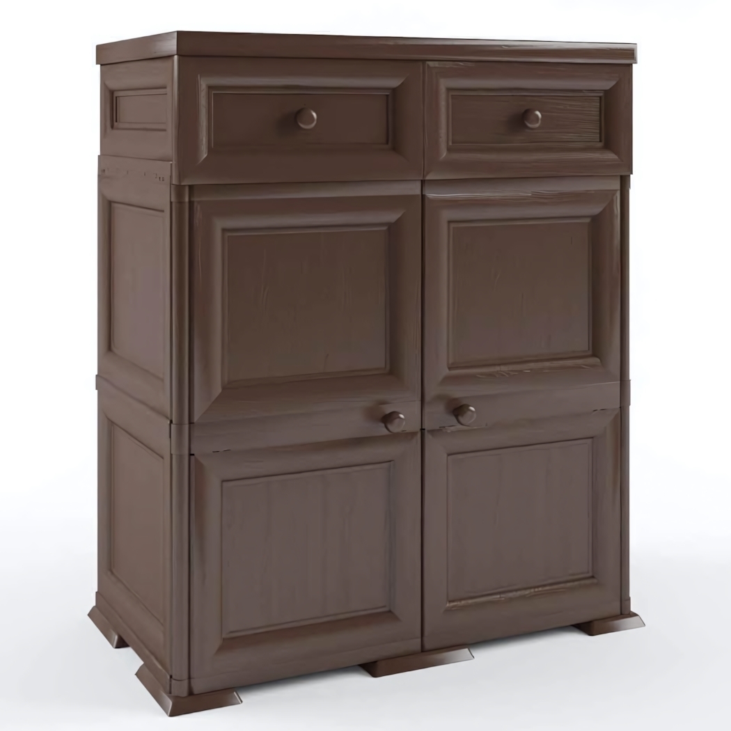 Шкаф-комод пластиковый «Уют» 2 дверцы, 2 ящика, цвет тёмно-коричневый, 81х42х103см