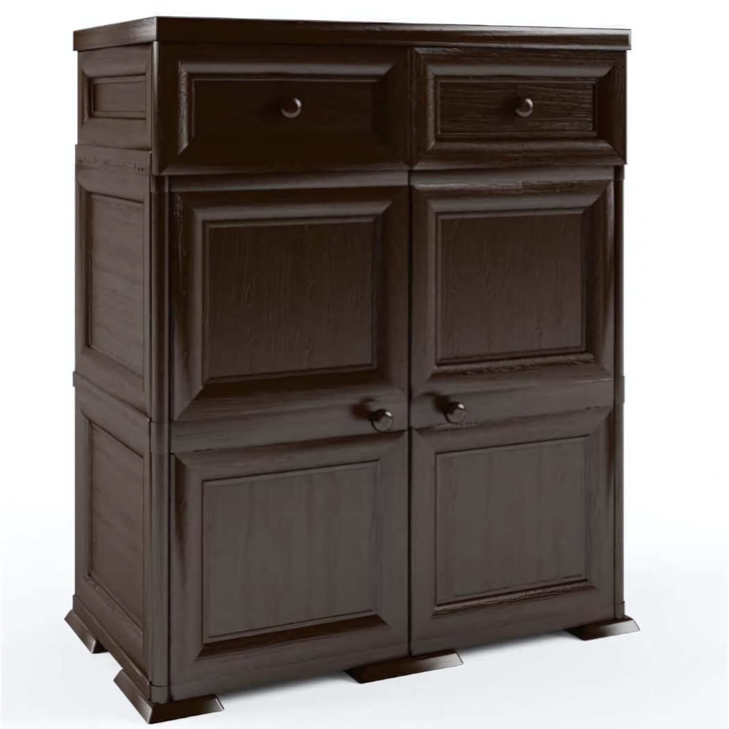 Этот шкаф-комод станет настоящим украшением вашего дома, сочетая в себе стиль и практичность. Его компактные размеры и элегантный шоколадный цвет позволяют легко вписать его в любой интерьер, будь то спальня или рабочий кабинет. Благодаря высококачественному пластику, шкаф отличается легкостью и прочностью, что делает его идеальным выбором для повседневного использования.