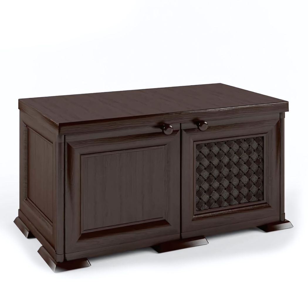 Вместительное внутреннее пространство разделено на две секции для сортировки обуви по сезонам или хранения щеток, кремов и других аксессуаров. Закрытая конструкция предотвращает скопление пыли и защищает содержимое от внешних воздействий.