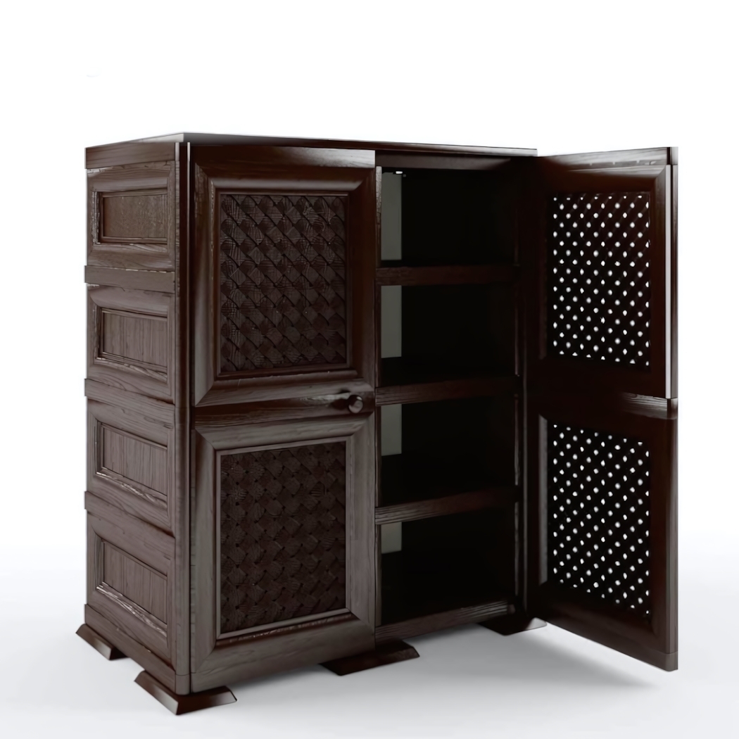 Шкаф выполнен из качественного пластикового материала, что обеспечивает его долговечность и простоту в уходе. Его размеры — 780х420х935 мм — делают его идеальным для размещения в ограниченных пространствах, а шоколадный цвет добавляет нотку тепла и уюта в ваш дом. Выбирая шкаф-тумбу "УЮТ", вы получаете не только функциональный, но и стильный элемент интерьера, который прослужит вам долго.