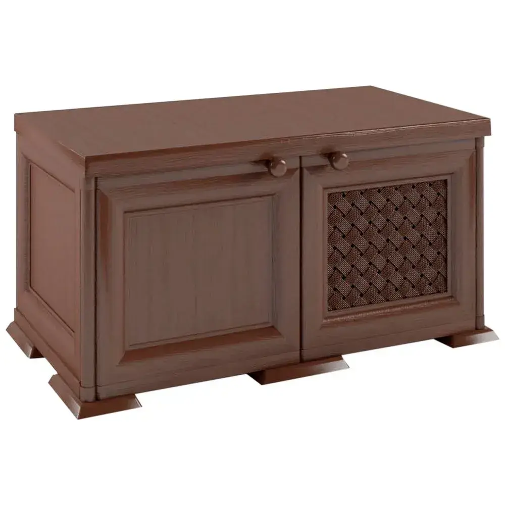 Практичное решение для хранения вещей с оригинальным дизайном плетеной вставки. Идеально впишется в интерьер прихожей, гостиной или спальни, создавая атмосферу уюта и порядка.