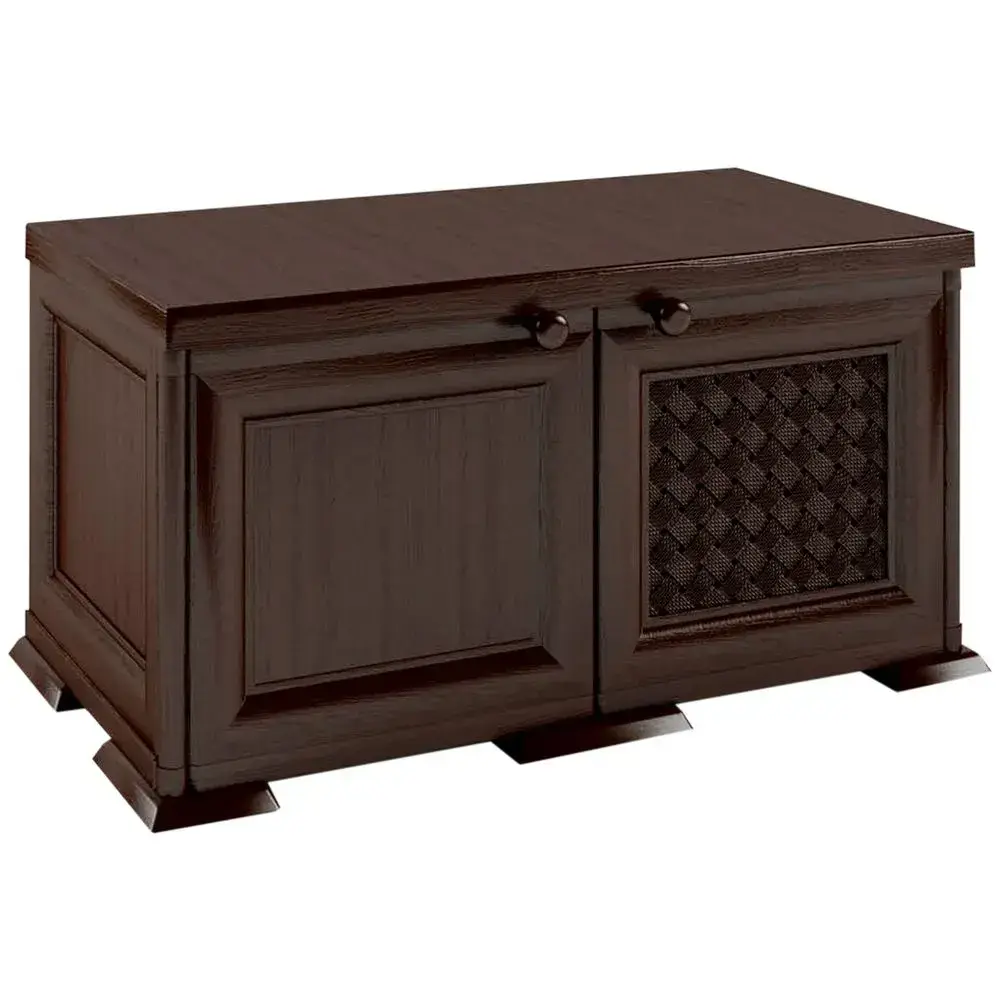 Шкаф глубиной 44.5 см оптимален для хранения обуви, хозяйственных принадлежностей или сезонных вещей. Лаконичный дизайн в шоколадных тонах с текстурой дерева легко впишется в любой интерьер. Модель не требует сложного ухода — достаточно протирать поверхность влажной тканью.