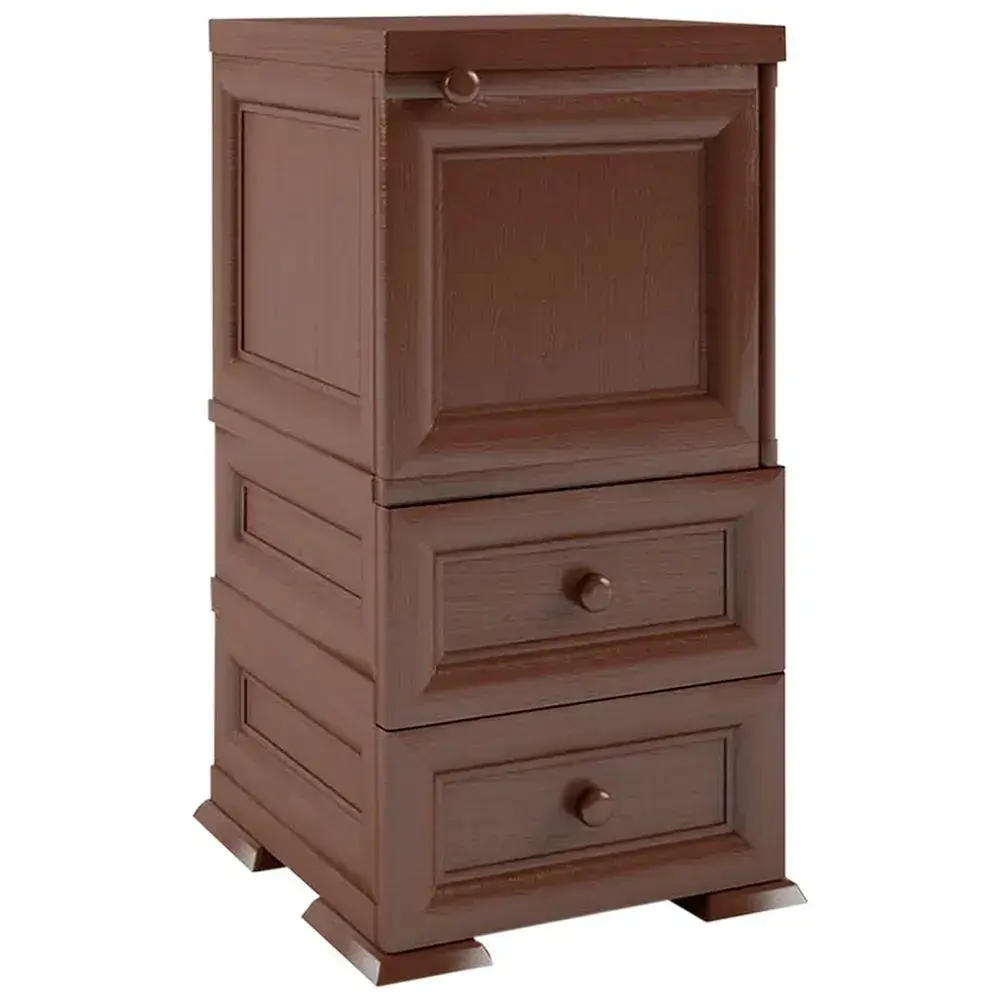 Идеальное решение для организации пространства в небольших комнатах и прихожих. Деревянная конструкция с тремя вместительными ящиками и открытым верхним отсеком сочетает практичность и эстетику современного интерьера.