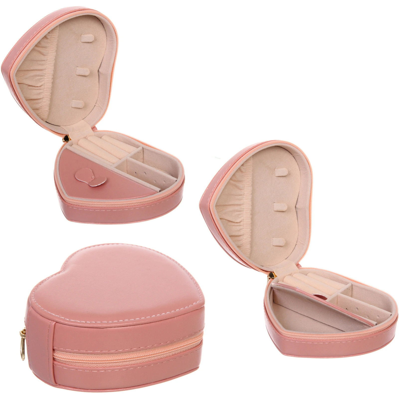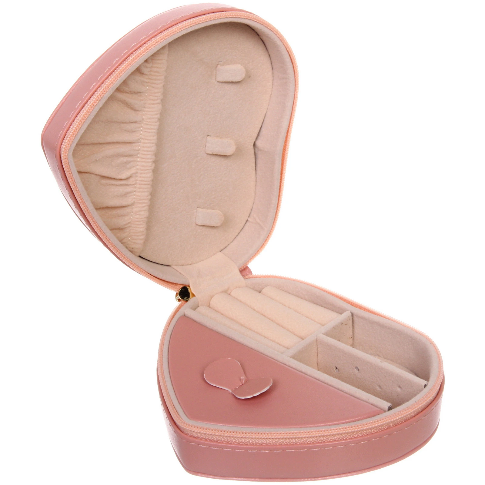 Шкатулка для украшений «ДАНТЕ» в форме сердца, цвет пудровая роза, 12х10х4.7 см, с молнией и мягкой внутренней отделкой