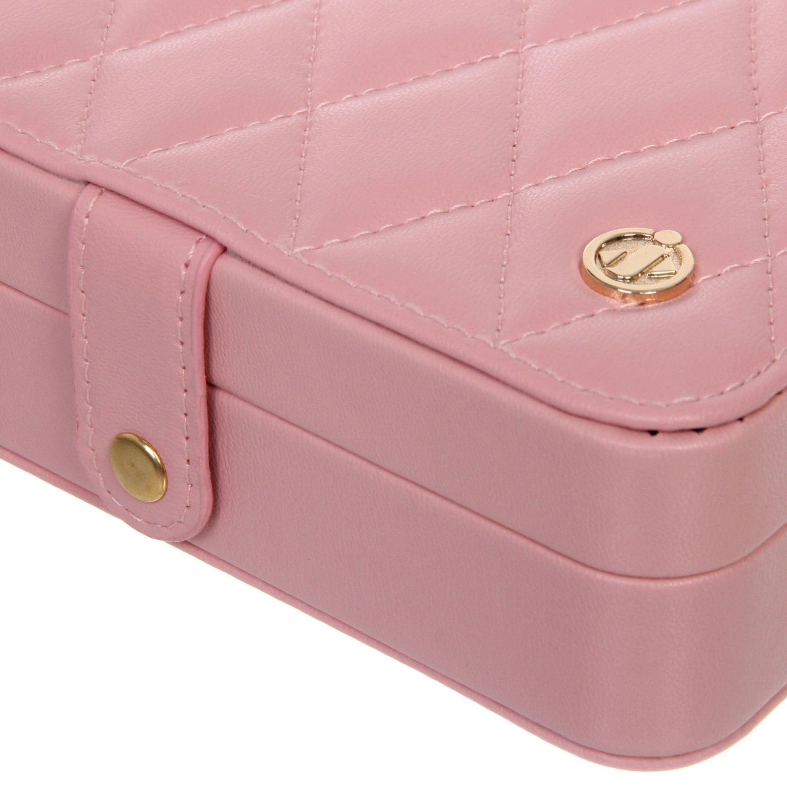 Эта стильная шкатулка создана для тех, кто ценит не только красоту украшений, но и удобство их хранения. Нежный пудрово-розовый цвет и изящная стёганая поверхность с золотистым декором делают её не просто функциональным предметом, а украшением вашего туалетного столика или комода.