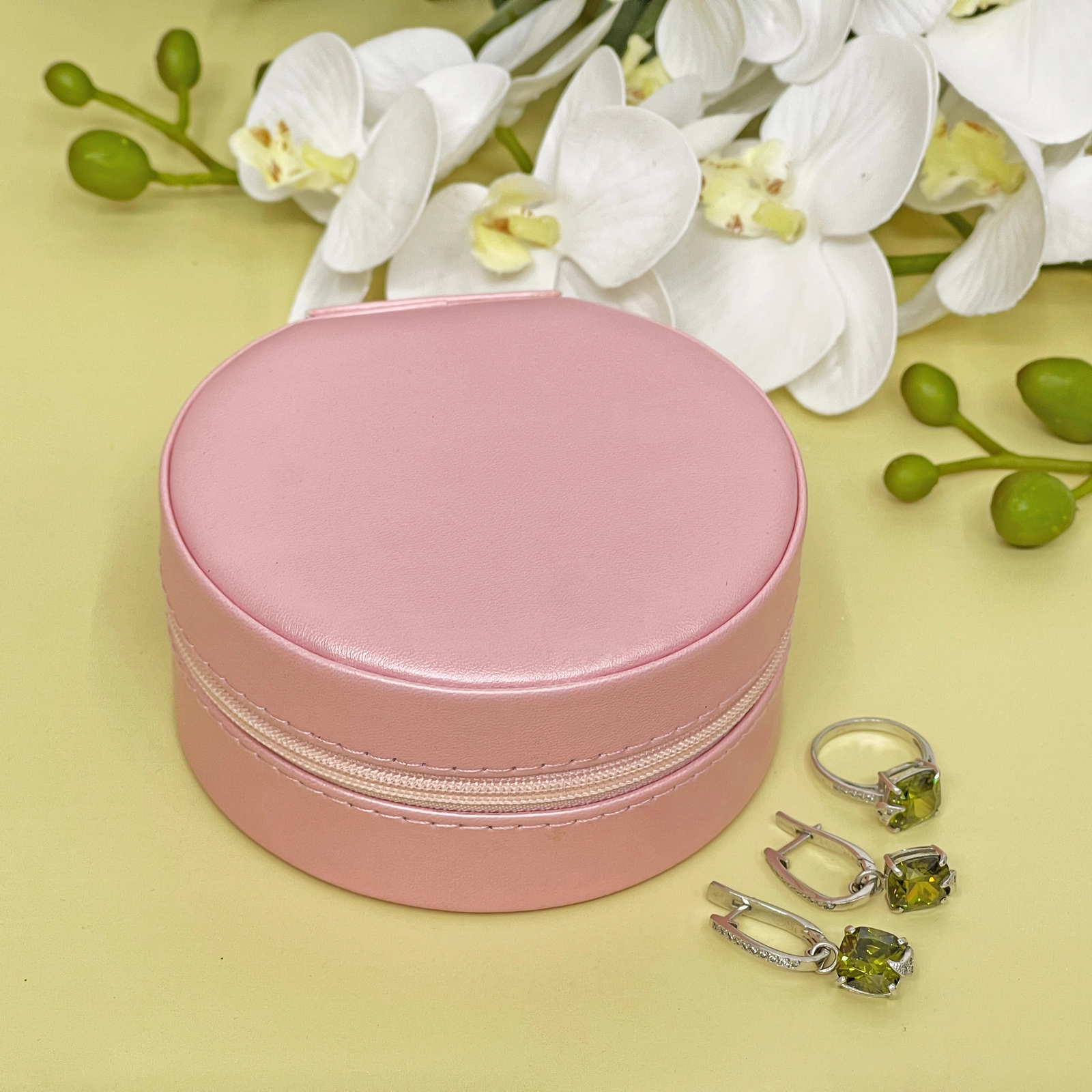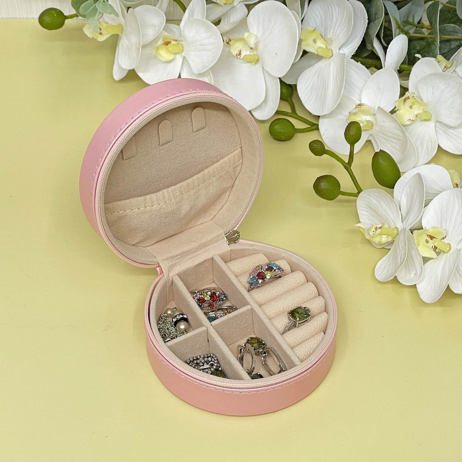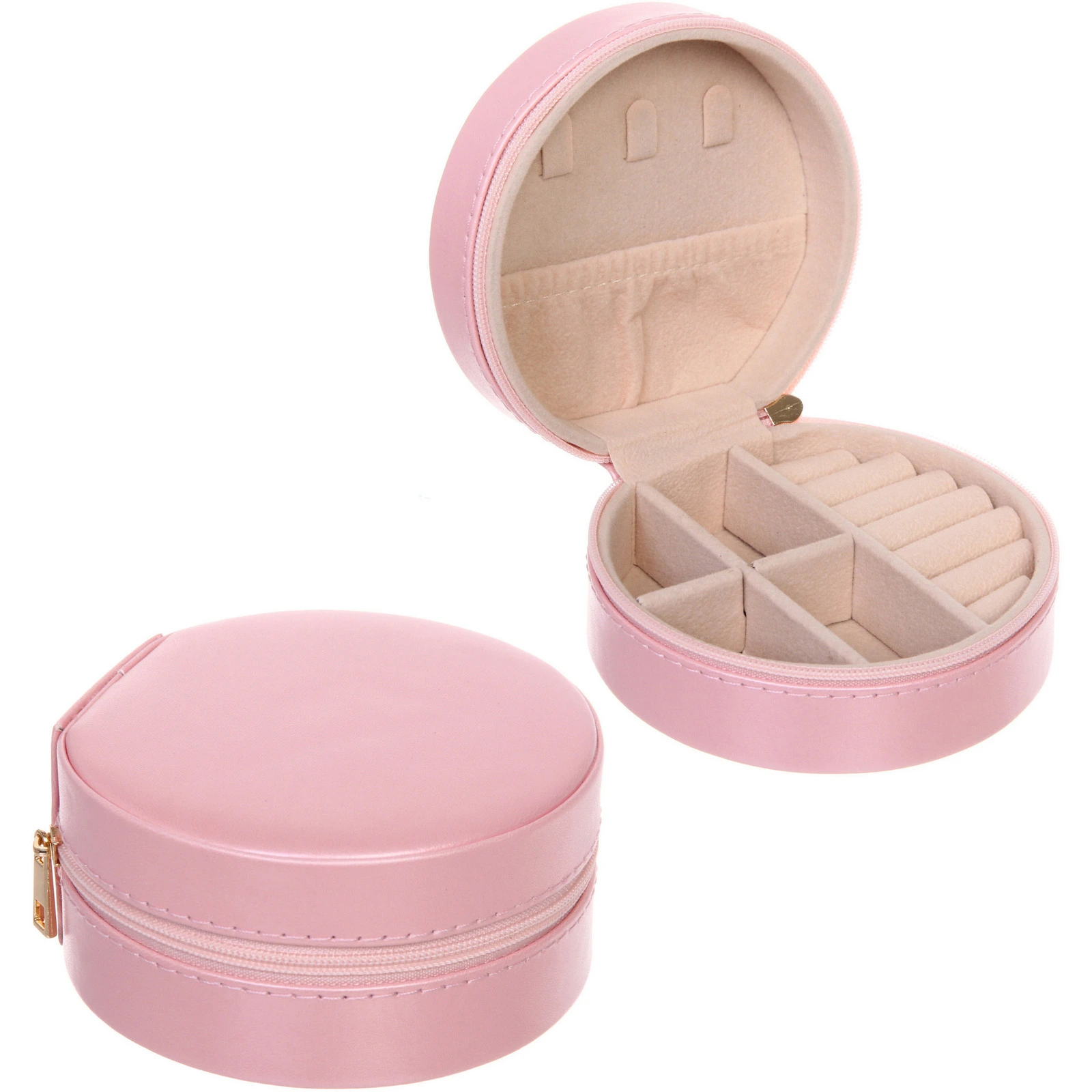 Эта круглая шкатулка в нежном пудрово-розовом цвете станет элегантным и практичным решением для хранения ваших драгоценностей. Она не только защитит украшения от пыли и повреждений, но и поможет организовать их так, чтобы каждая вещь всегда была под рукой.
