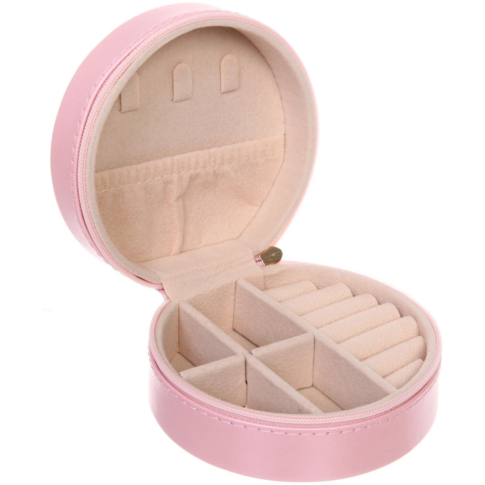 Шкатулка для украшений «ЛАУРИЦЦА», круглая, цвет пудровая роза, с внутренними отделениями, 10х10х5 см