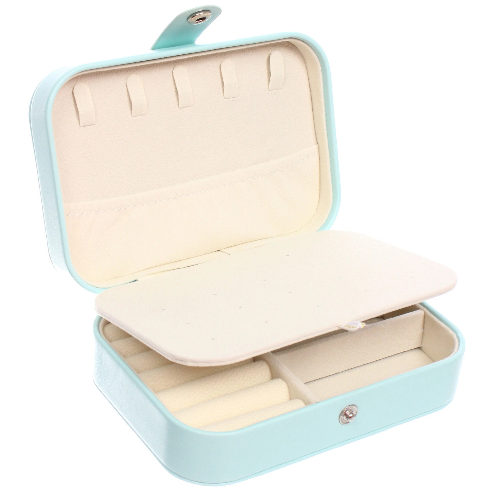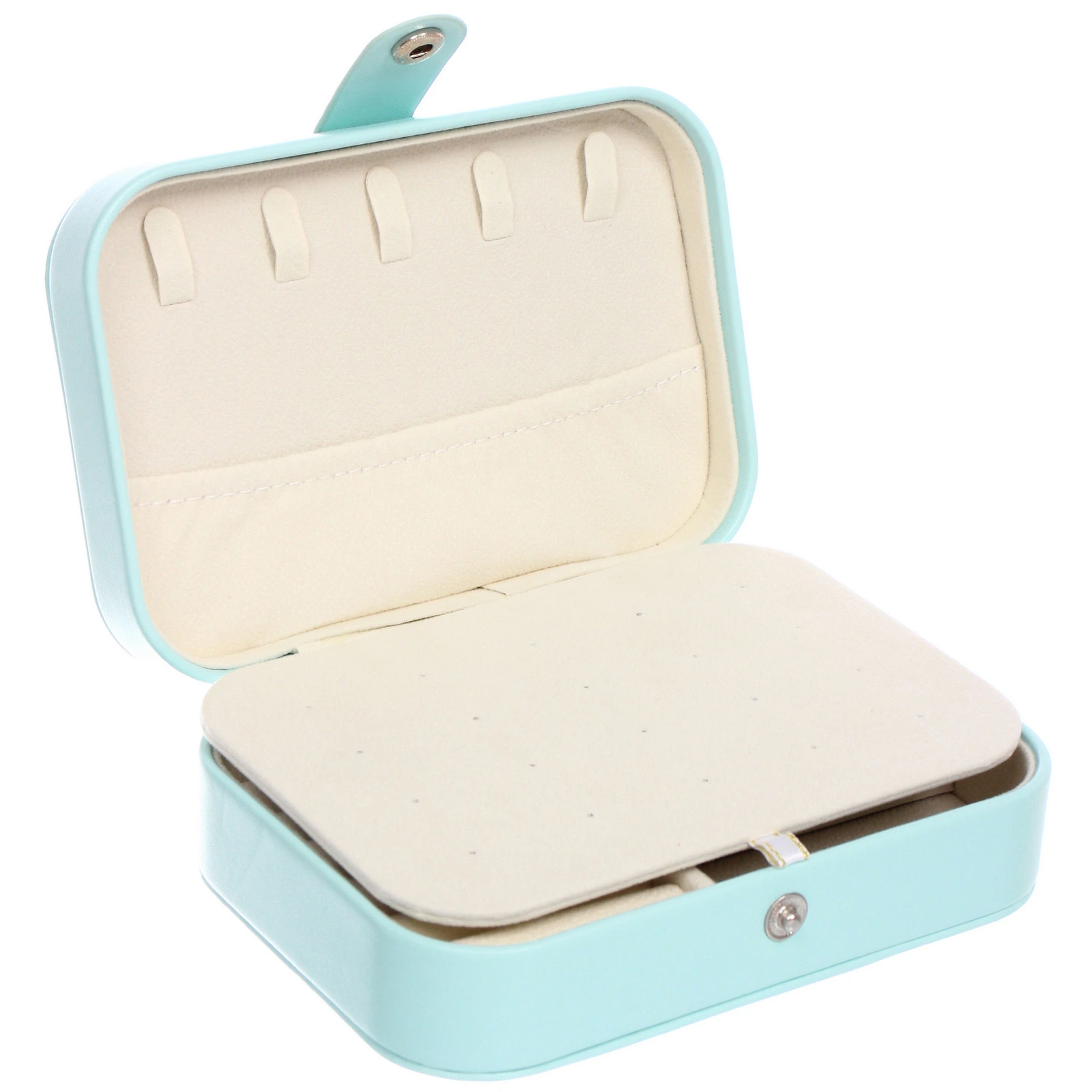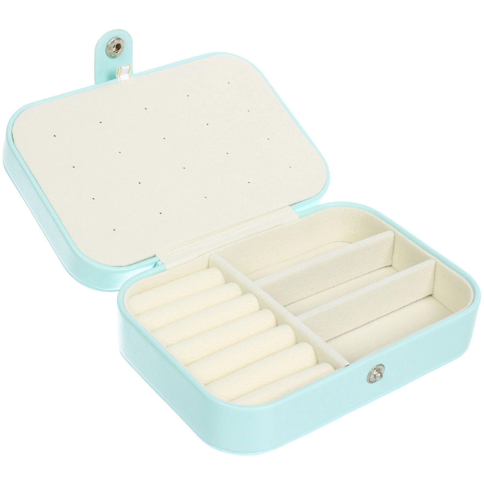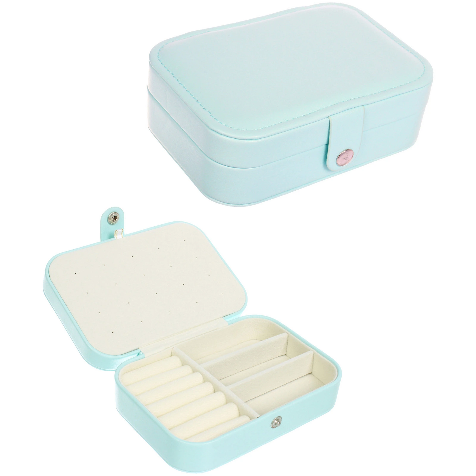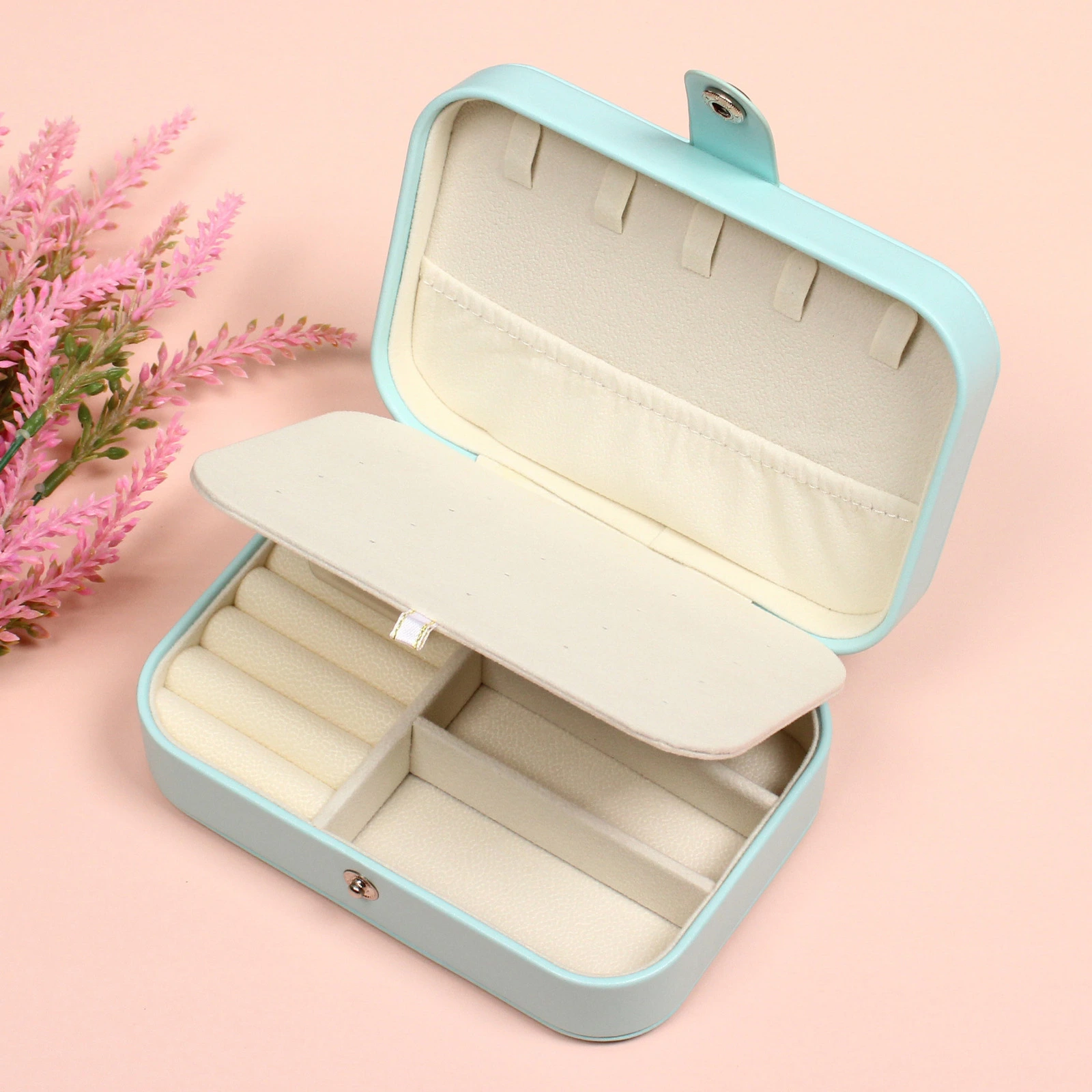 - Мягкая внутренняя отделка: Все внутренние поверхности, включая валики и перегородки, выполнены из приятного на ощупь, нежного материала светлого оттенка, который не повреждает даже самые деликатные украшения.