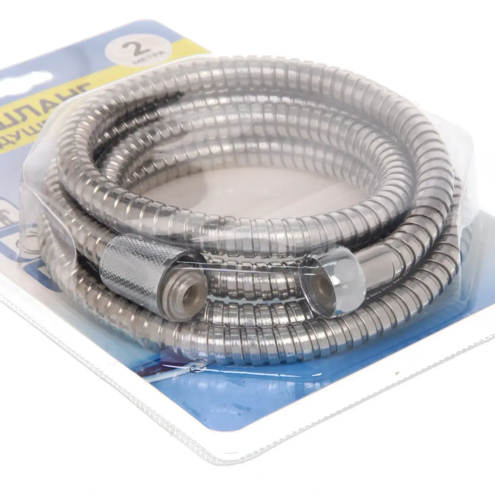 Шланг для душевой лейки 2м, гибкий, металлический, цвет хром, универсальный, сталь, термостойкий