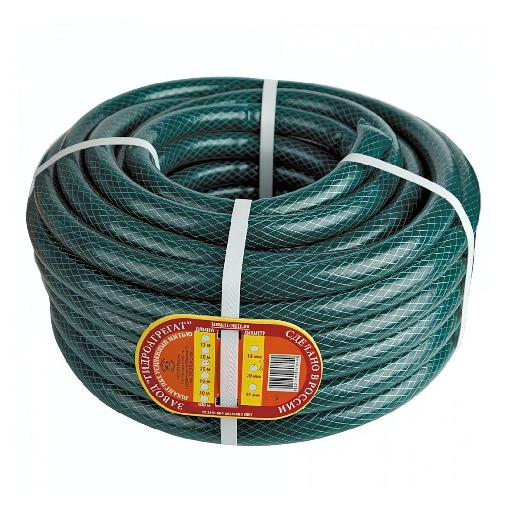 Конструкция шланга включает усиленный непрозрачный черный внутренний слой, который предотвращает рост микроорганизмов и развитие водорослей внутри, сохраняя чистоту воды. Между слоями ПВХ проходит прочное армирование полиамидной нитью, обеспечивающее устойчивость к перегибам, давлению и механическим повреждениям. Яркий зеленый наружный слой делает шланг заметным на участке, а также защищает от ультрафиолета.