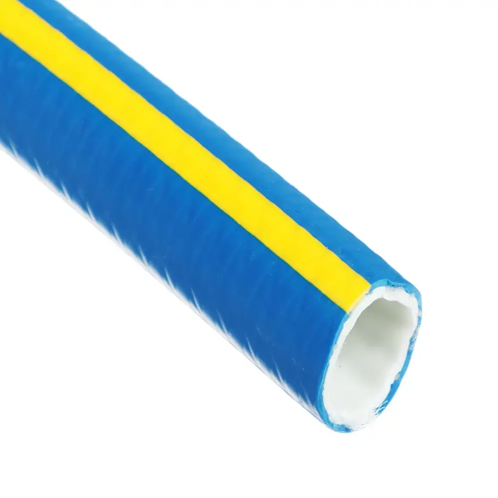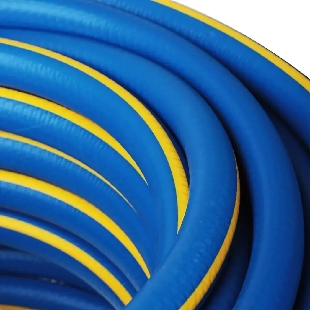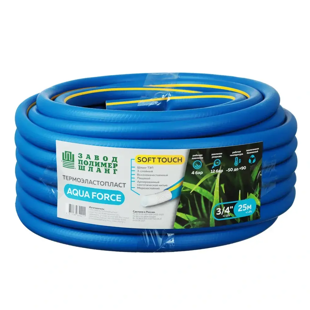 Шланг «AQUA FORCE» 3/4" (19мм), пищевой, 3-слойный армированный, синий с желтой полосой, 25м, -50°С/+90°С
