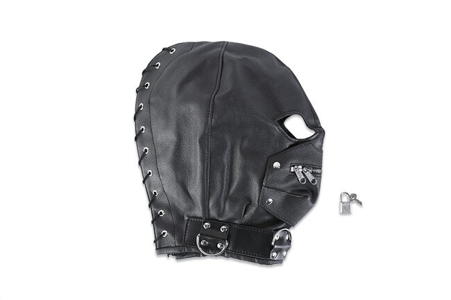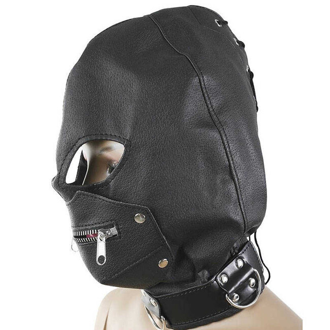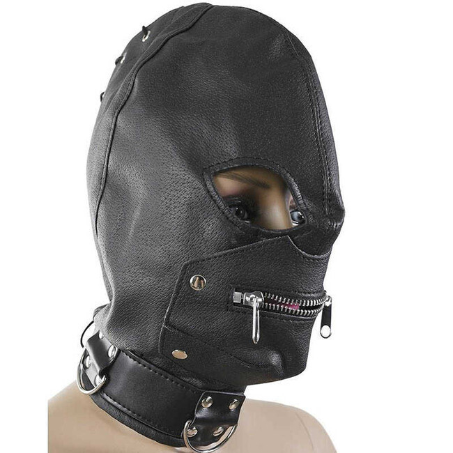 Шлем БДСМ с регулируемой молнией, экокожа, металл, черный, 25х31см