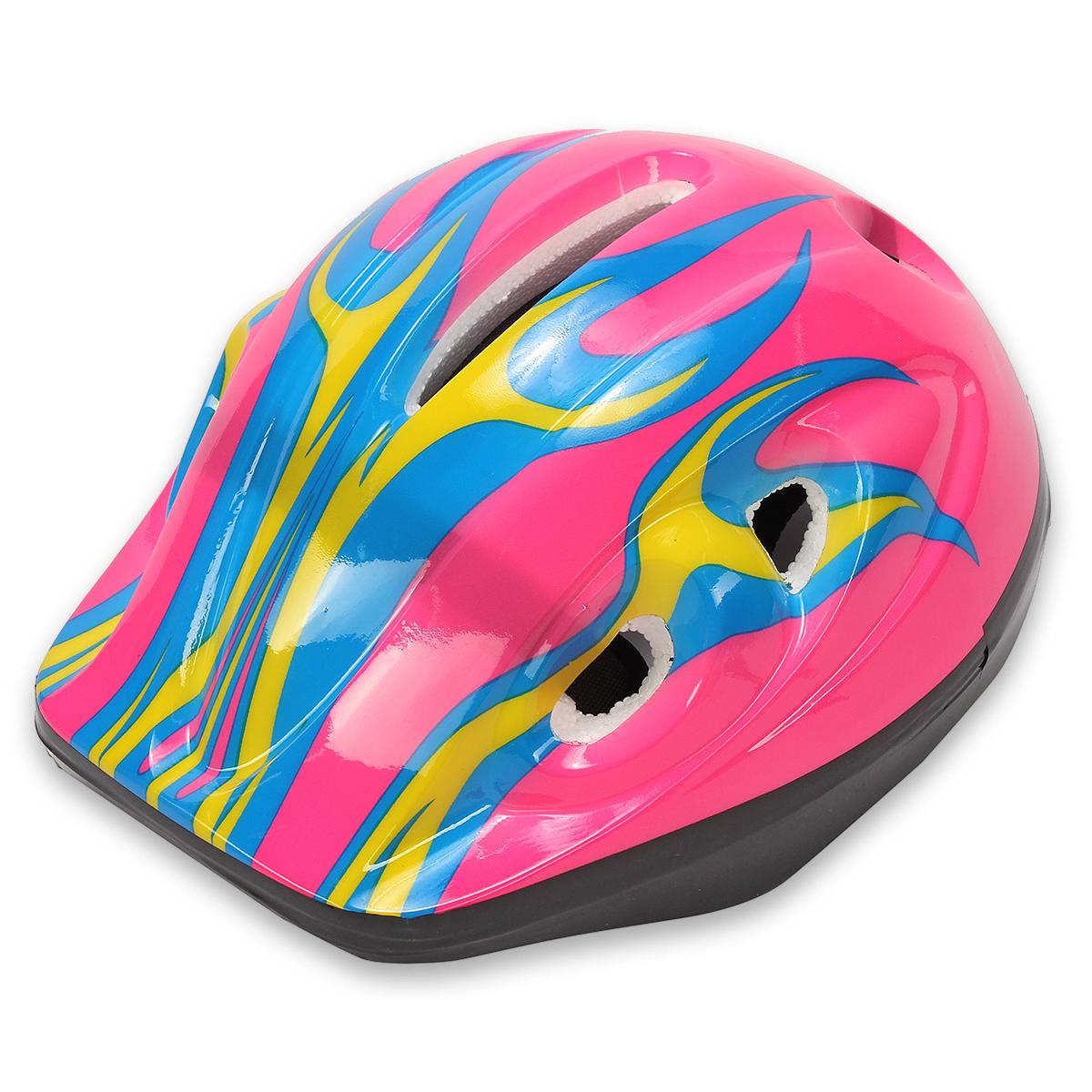 Шлем выполнен в различных цветах, включая розовый и черный, с яркими графическими элементами. Он легкий и удобный, что позволяет детям носить его без дискомфорта. Размер шлема универсальный, что делает его подходящим для большинства детей и подростков.