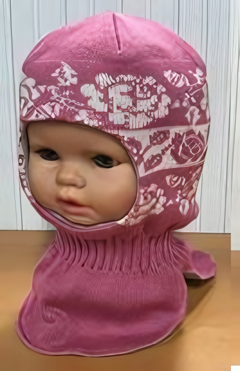 Шлем-капор для девочки «Мегашапка», размер 50-52, розовый с цветочным узором, шерсть 70%