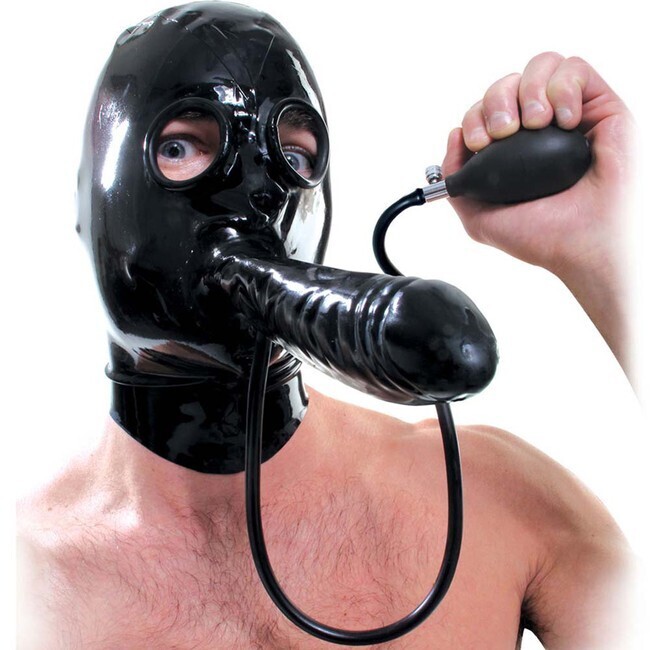 Шлем BDSM с надувным кляпом «Fuck My Face Hood», латекс, универсальный размер, длина 13,5 см