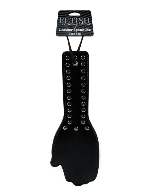 Шлепалка «Spank Me Paddle» для BDSM, винил с металлом, 29 см, черно-серебряный