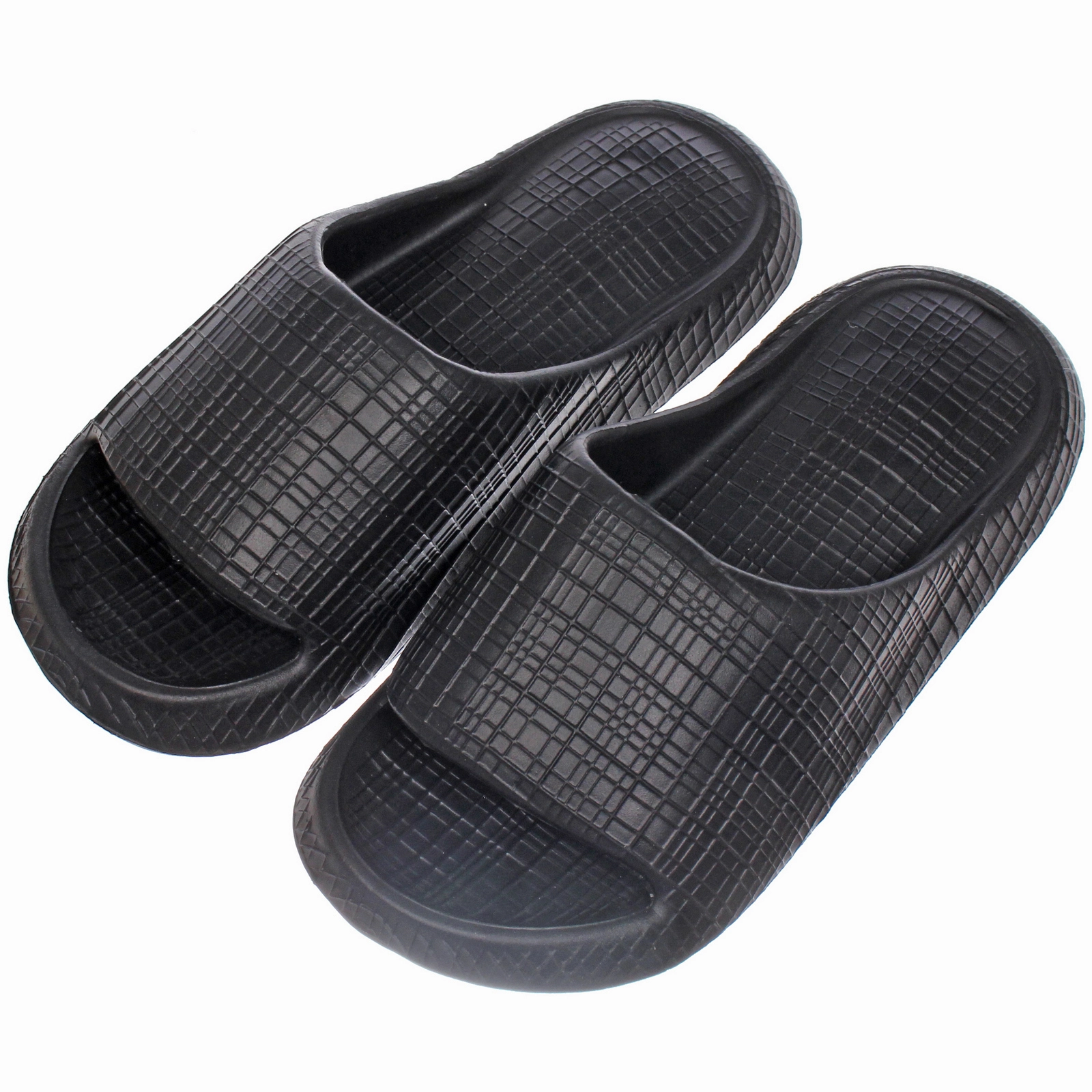 - Рельефная поверхность: Вся внешняя часть шлепанцев, включая верх, боковые стенки и стельку, имеет рисунок в виде мелкой сетки. Это не только интересный дизайнерский элемент, но и практичное решение, которое может улучшить сцепление и вентиляцию.