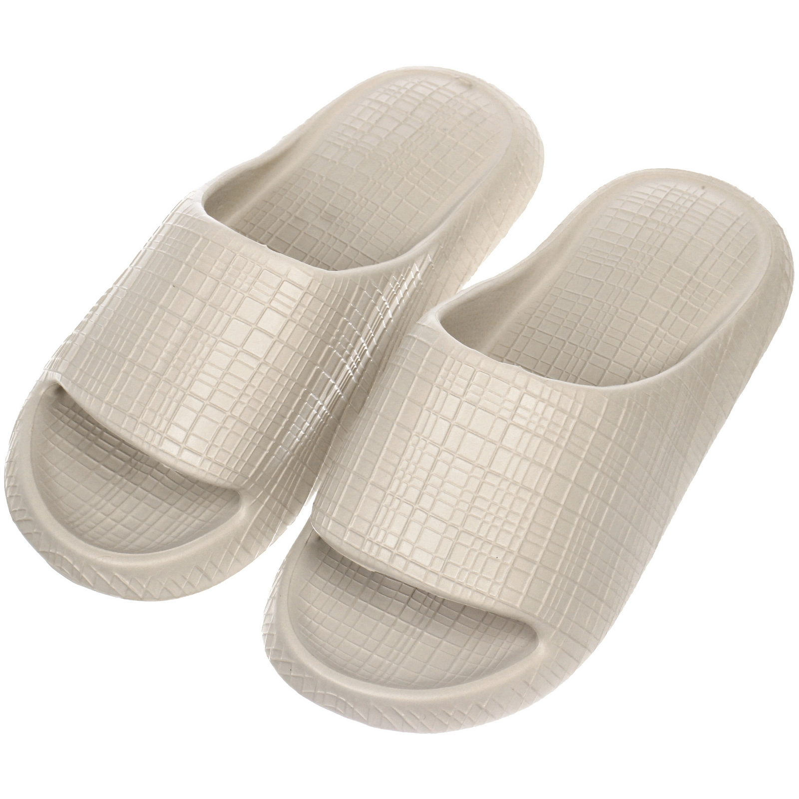 Шлепанцы выполнены в спокойном светло-сером (бежево-сером) однотонном цвете, который легко сочетается с любой домашней или пляжной одеждой. Минималистичный дизайн без лишних деталей и логотипов делает модель универсальной и стильной.