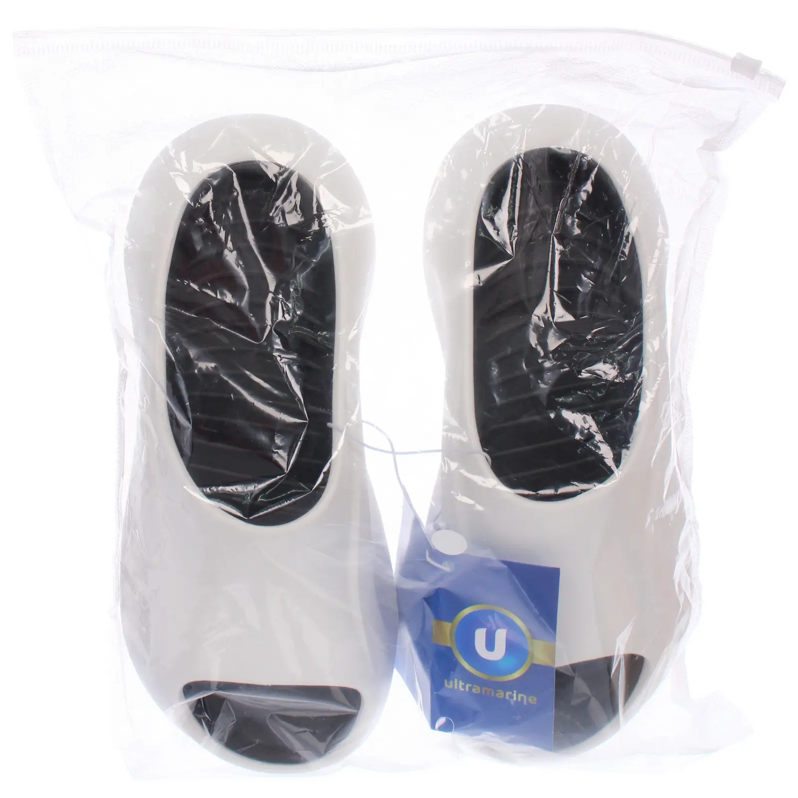 Размер шлепанцев составляет 40-41, что делает их универсальными для большинства мужских ног. Белый цвет в сочетании с черной стелькой создает стильный контраст и подчеркивает современный дизайн этой обуви. Не упустите возможность дополнить свой образ удобной и стильной обувью!