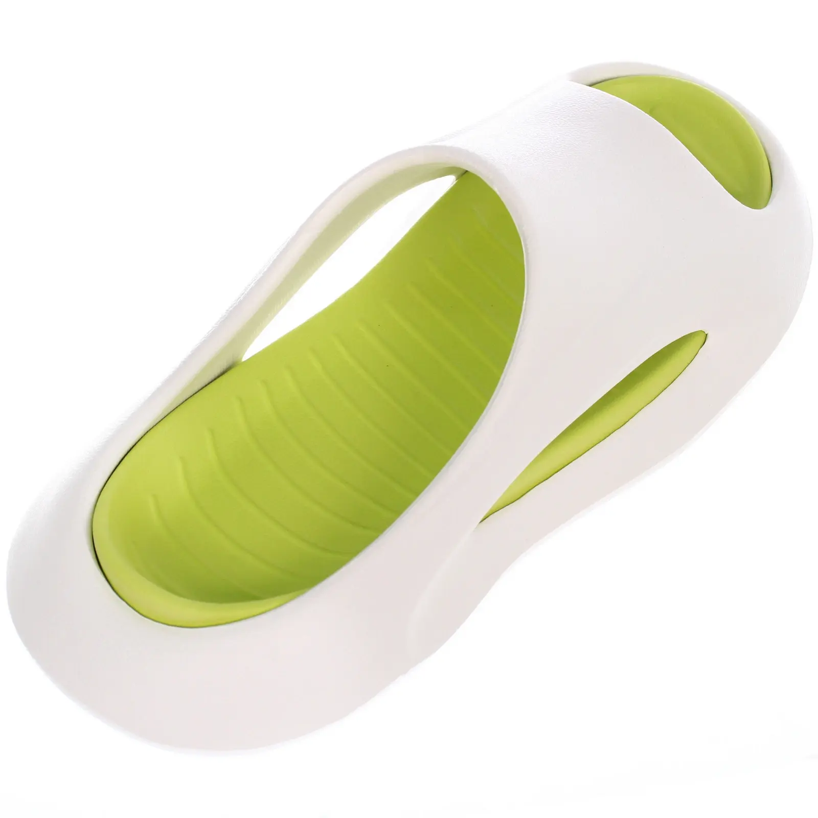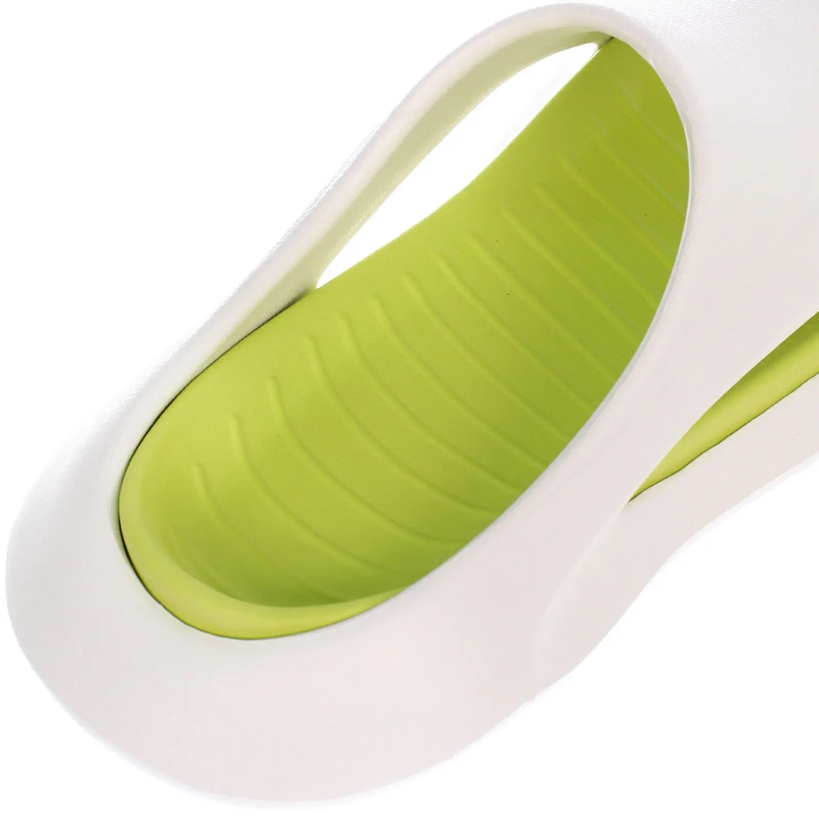 Цвет: белый с зеленой стелькой. Материал: EVA. Размер: 44‑45. Конструкция без задника, открытый носок, вентиляционные вырезы по бокам и рифленая подошва для дополнительного сцепления.