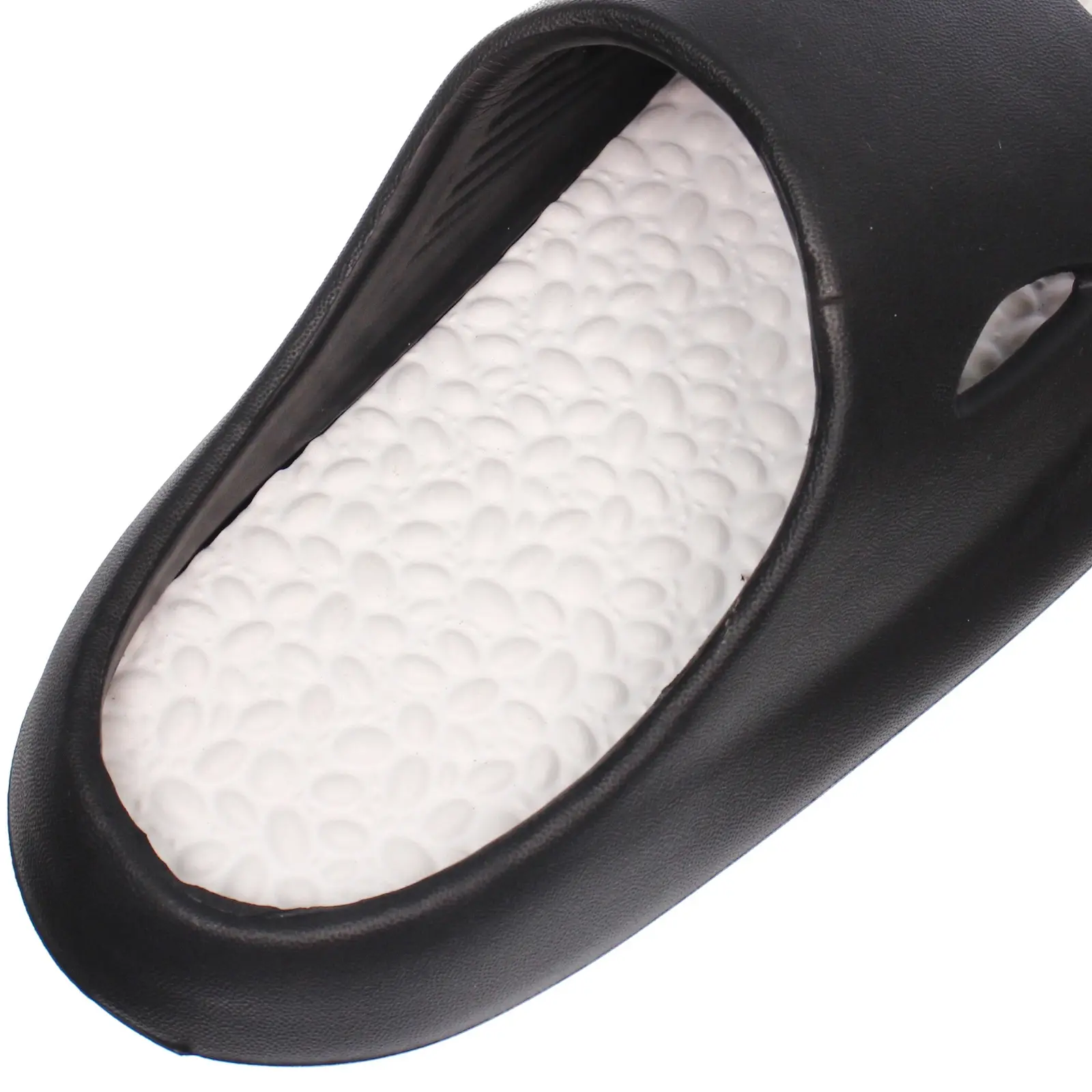 Эти женские шлепанцы созданы для тех, кто ценит лёгкость и надёжность. Белая рифленая стелька обеспечивает мягкую поддержку стопы, а черный верх из прочного материала ЭВА защищает от влаги и скольжения.