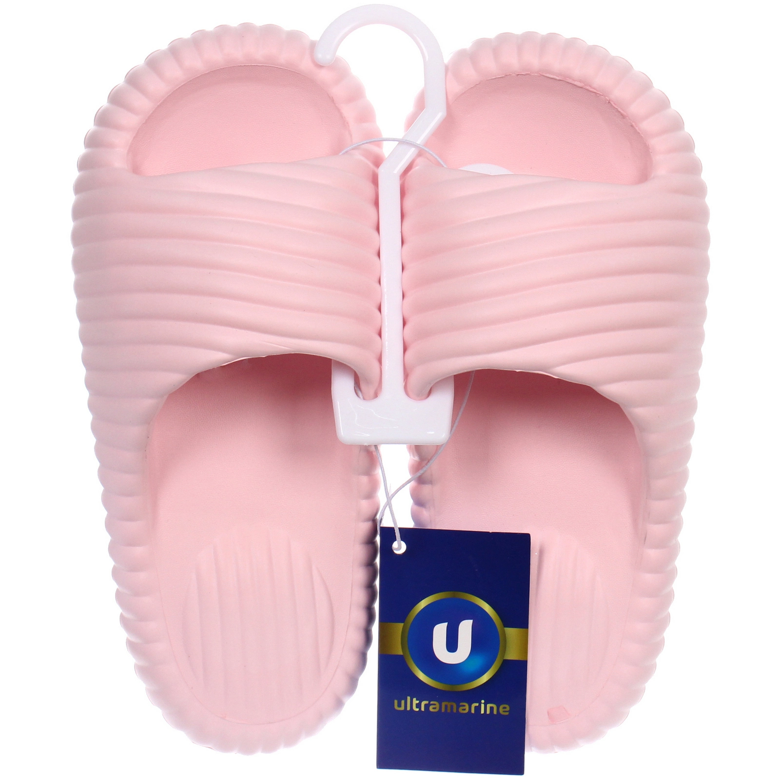 Шлепанцы поставляются в индивидуальной прозрачной упаковке с застежкой-молнией, что удобно для хранения и транспортировки. В комплекте идет подвес с крючком для размещения на стойке в магазине. Обращаем внимание, что в названии указан конкретный цвет — розовый. Модель представлена в размере 36-37.