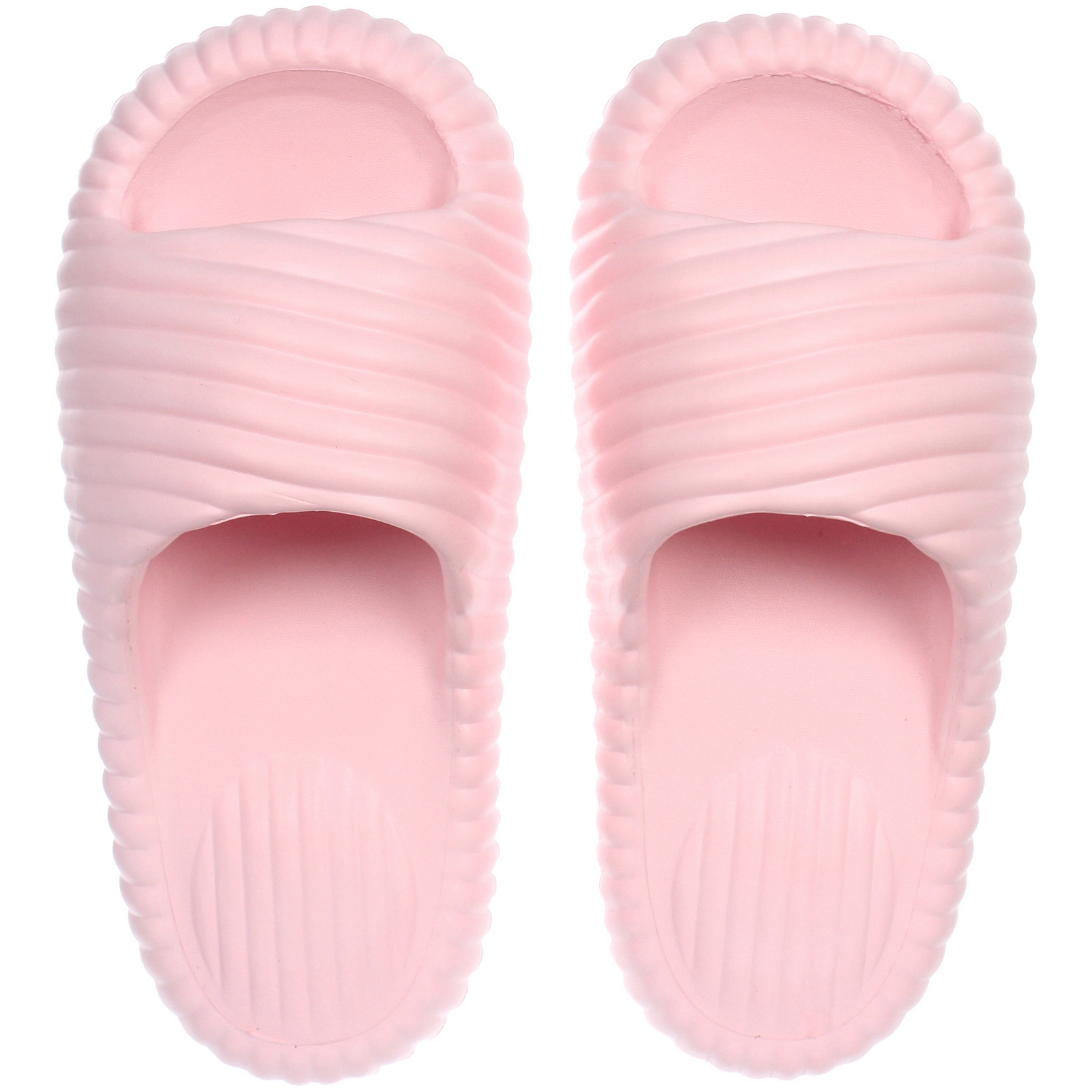 Шлепанцы представлены в нежном светло-розовом цвете, который создаёт ощущение чистоты и свежести. Минималистичный дизайн без лишних деталей делает их универсальным аксессуаром, который легко сочетается с домашней или пляжной одеждой.