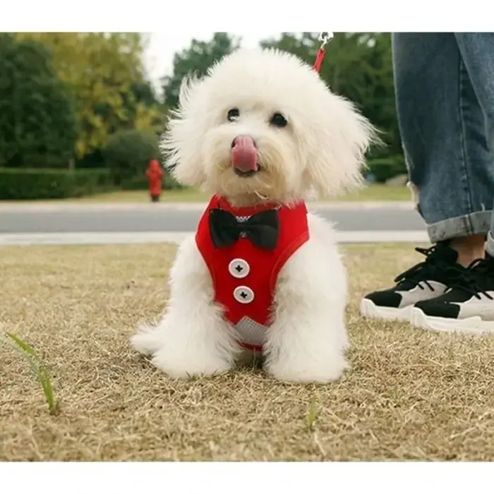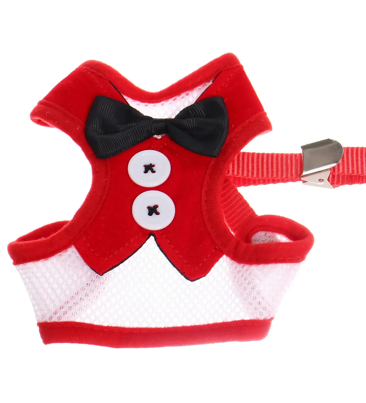 Обеспечьте своему питомцу комфорт и стиль с шлейкой и поводком «LAPUSIK». Этот комплект идеально подходит для мелких собак и кошек, позволяя вам наслаждаться прогулками без лишних забот. Яркий красный цвет и нарядный дизайн в стиле смокинга с черным бантом делают его не только практичным, но и стильным аксессуаром для вашего любимца.
