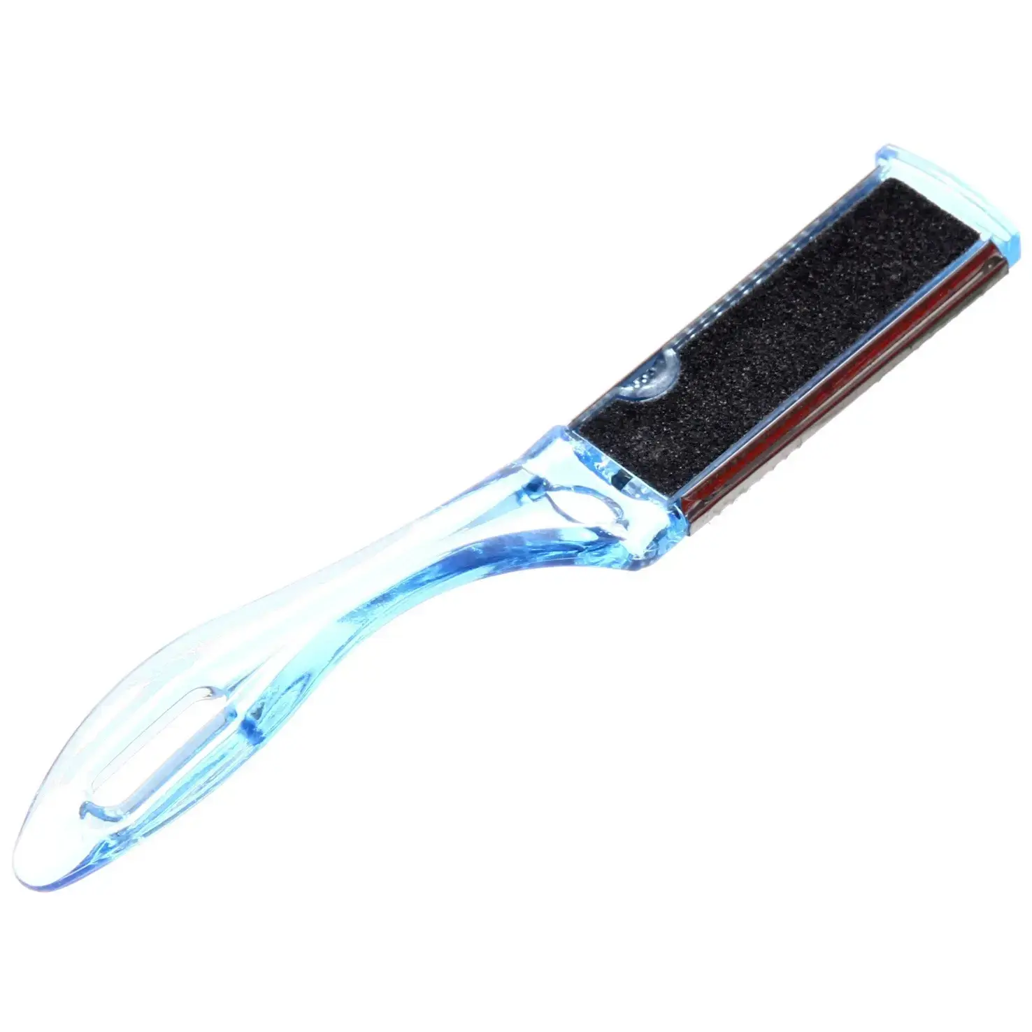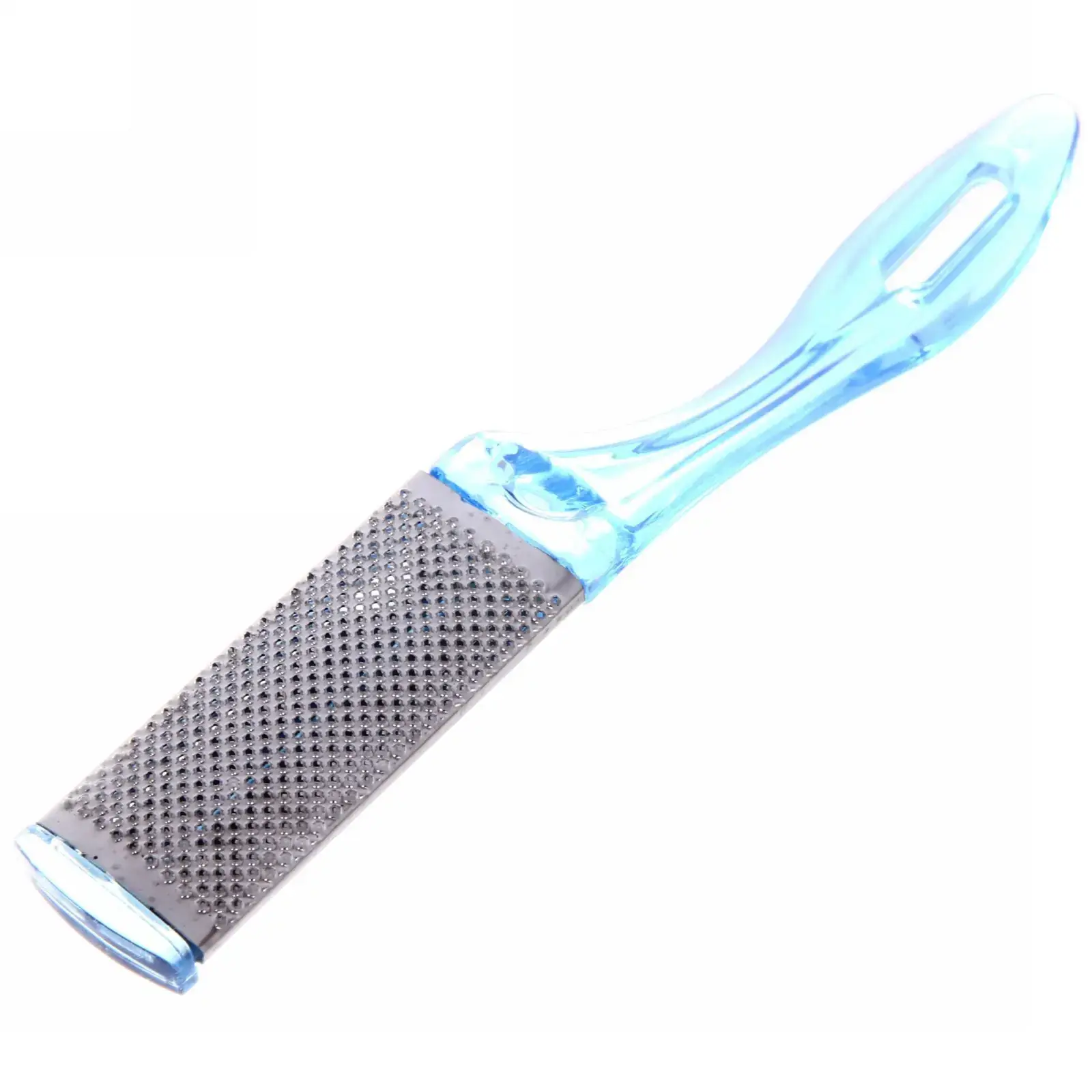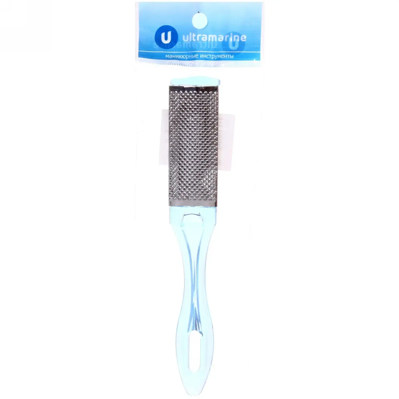 Шлифовка имеет прозрачную голубую ручку и металлическую поверхность с множеством мелких отверстий, что обеспечивает отличное натирание. Она упакована в удобный пакет, что делает её идеальной для хранения и транспортировки. Не упустите возможность сделать уход за ногами простым и эффективным с шлифовкой «Ultramarine»!