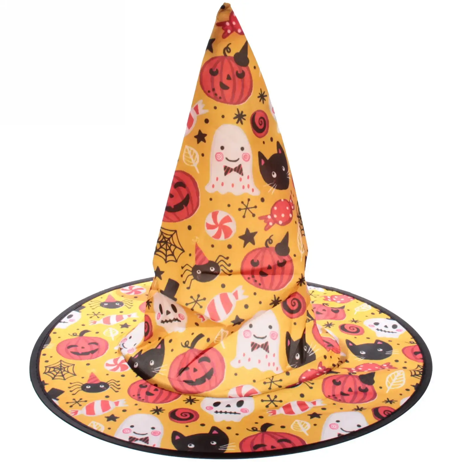 Карнавальная шляпа с детализированными хэллоуинскими принтами станет ключевым акцентом вашего костюма. Легкий текстиль и продуманная форма обеспечат комфорт на протяжении всего вечера.