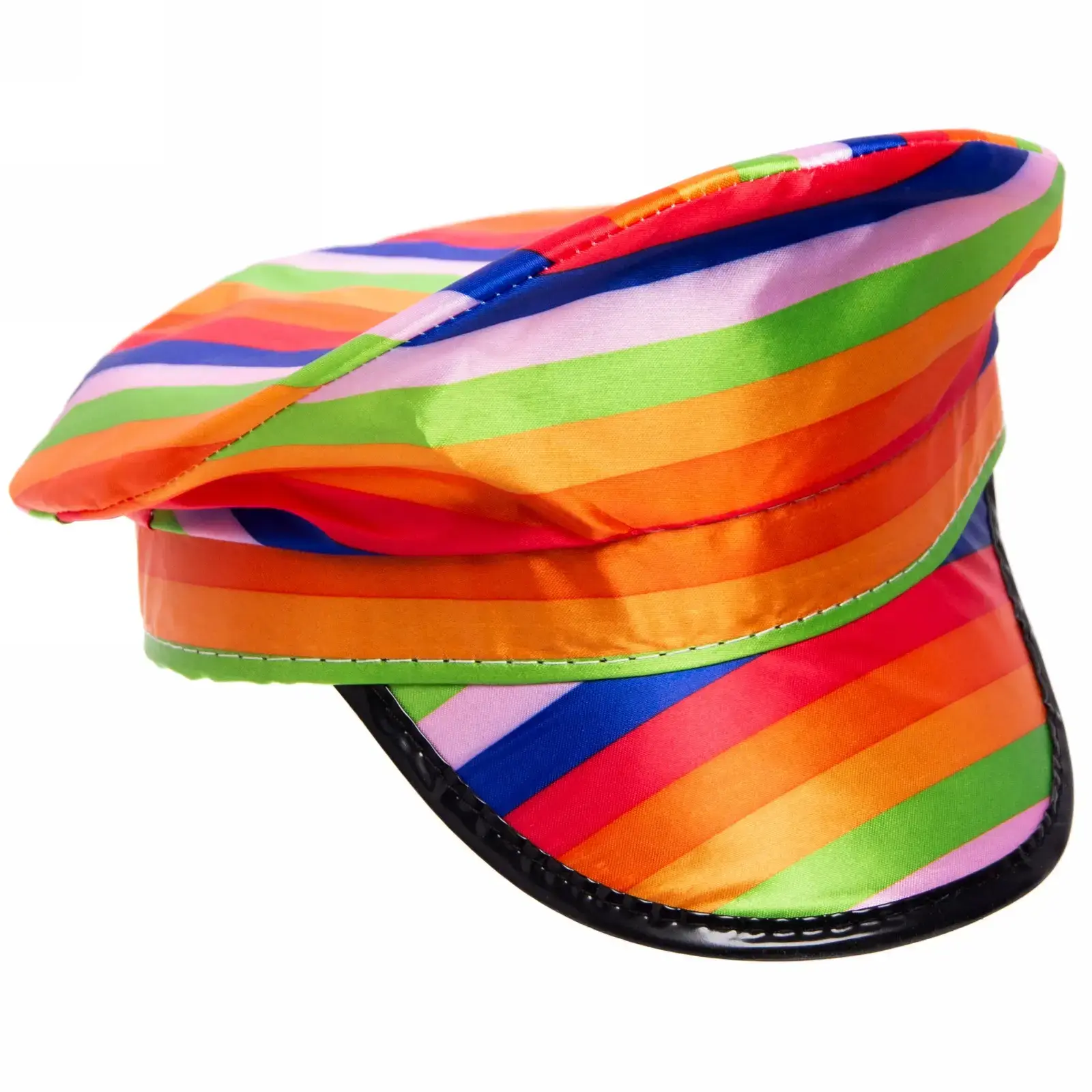 Шляпа подходит для людей всех возрастов и станет отличным дополнением к любому костюму. Она легко надевается и снимается, что позволяет быстро менять образы. Яркие полосы красного, оранжевого, зеленого, фиолетового и синего цветов привлекут внимание и создадут праздничное настроение. Используйте её для фотосессий, карнавальных шествий или просто для поднятия настроения в повседневной жизни.