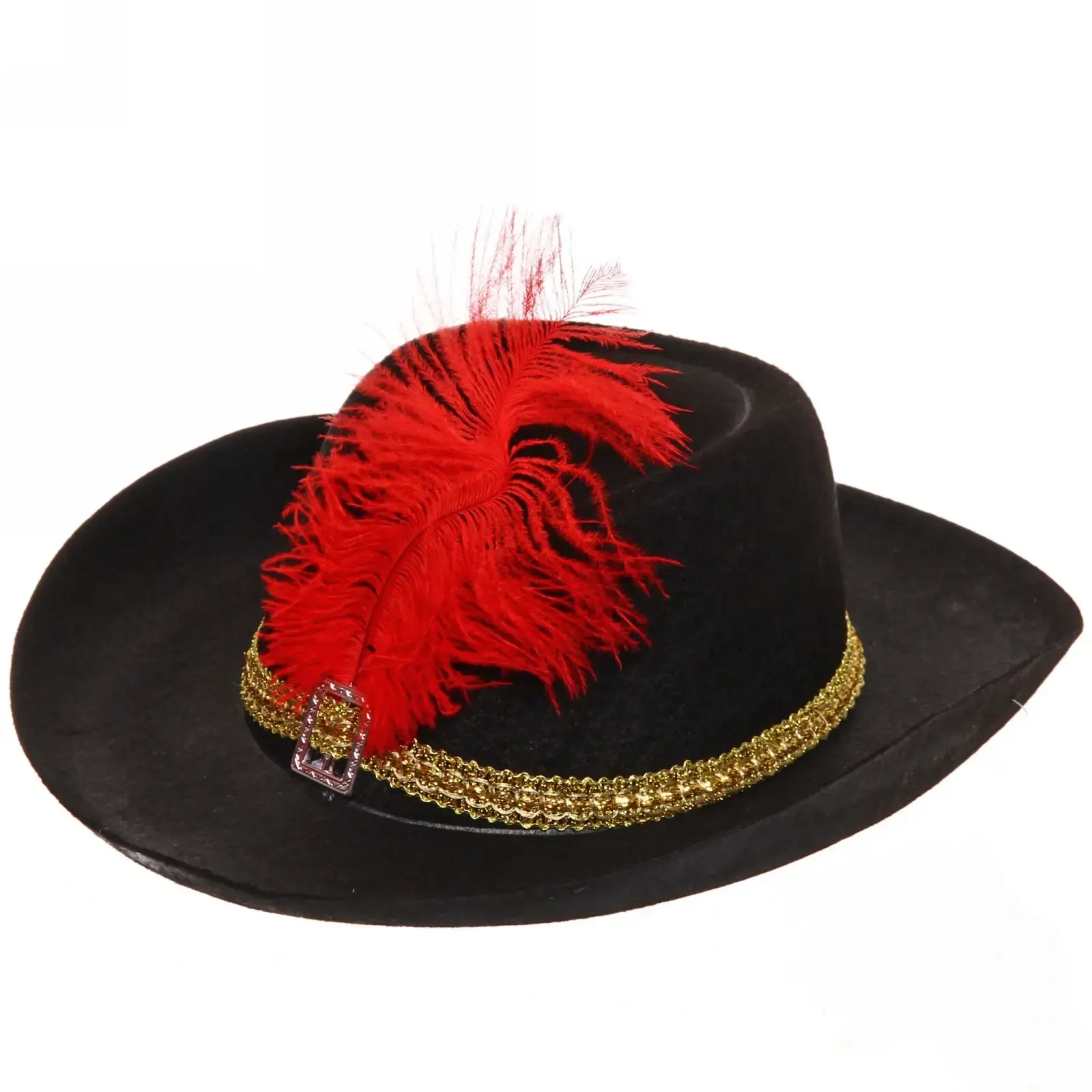 Шляпа карнавальная 'Мушкетёр'/ чёрная с красным пером/ текстиль