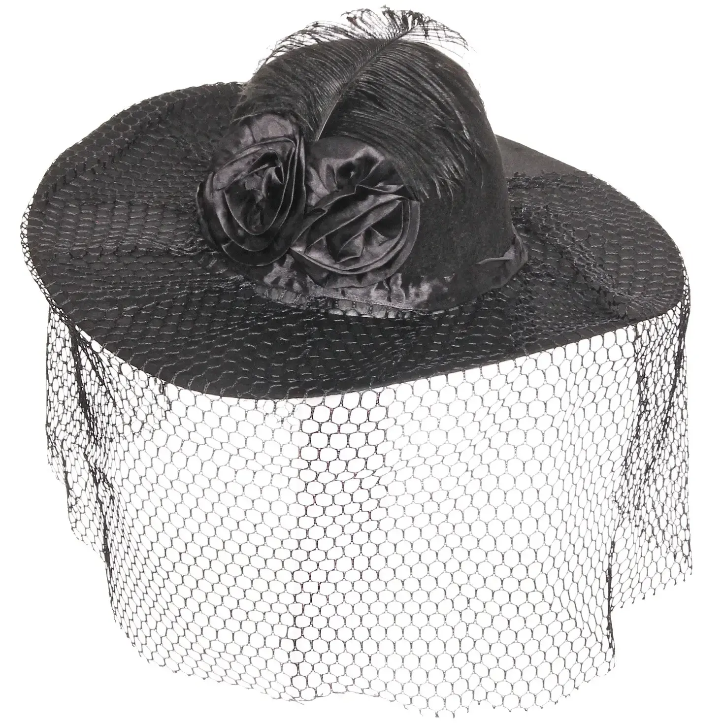 Шляпа карнавальная 'Шикарная дама', черный, текстиль, с вуалью и розами