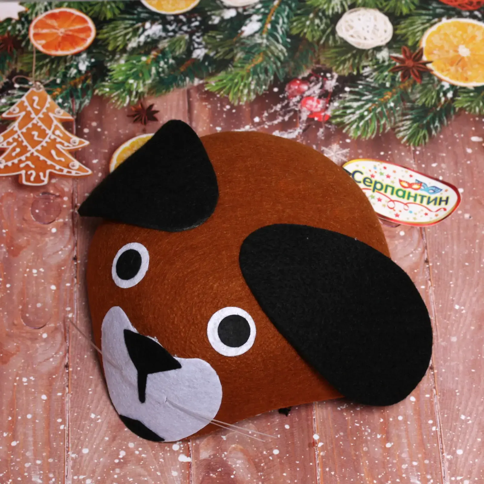 Мягкая карнавальная шляпа в виде милой собачки станет идеальным аксессуаром для новогодней вечеринки, детского утренника или тематического мероприятия. Эргономичная форма и легкий войлок обеспечат комфорт на протяжении всего праздника.