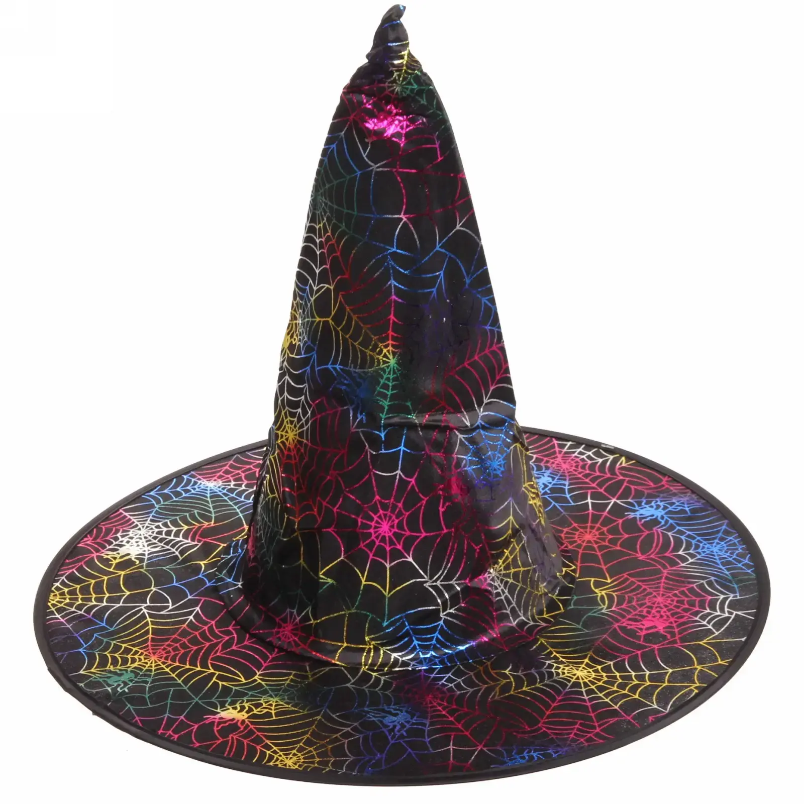 Шляпа имеет высокую конусообразную форму и широкие поля, что делает её заметной и стильной. Она подходит как для взрослых, так и для детей, что позволяет использовать её на различных мероприятиях. Благодаря универсальному дизайну, шляпа отлично сочетается с любыми костюмами, будь то ведьма, волшебник или другой персонаж.