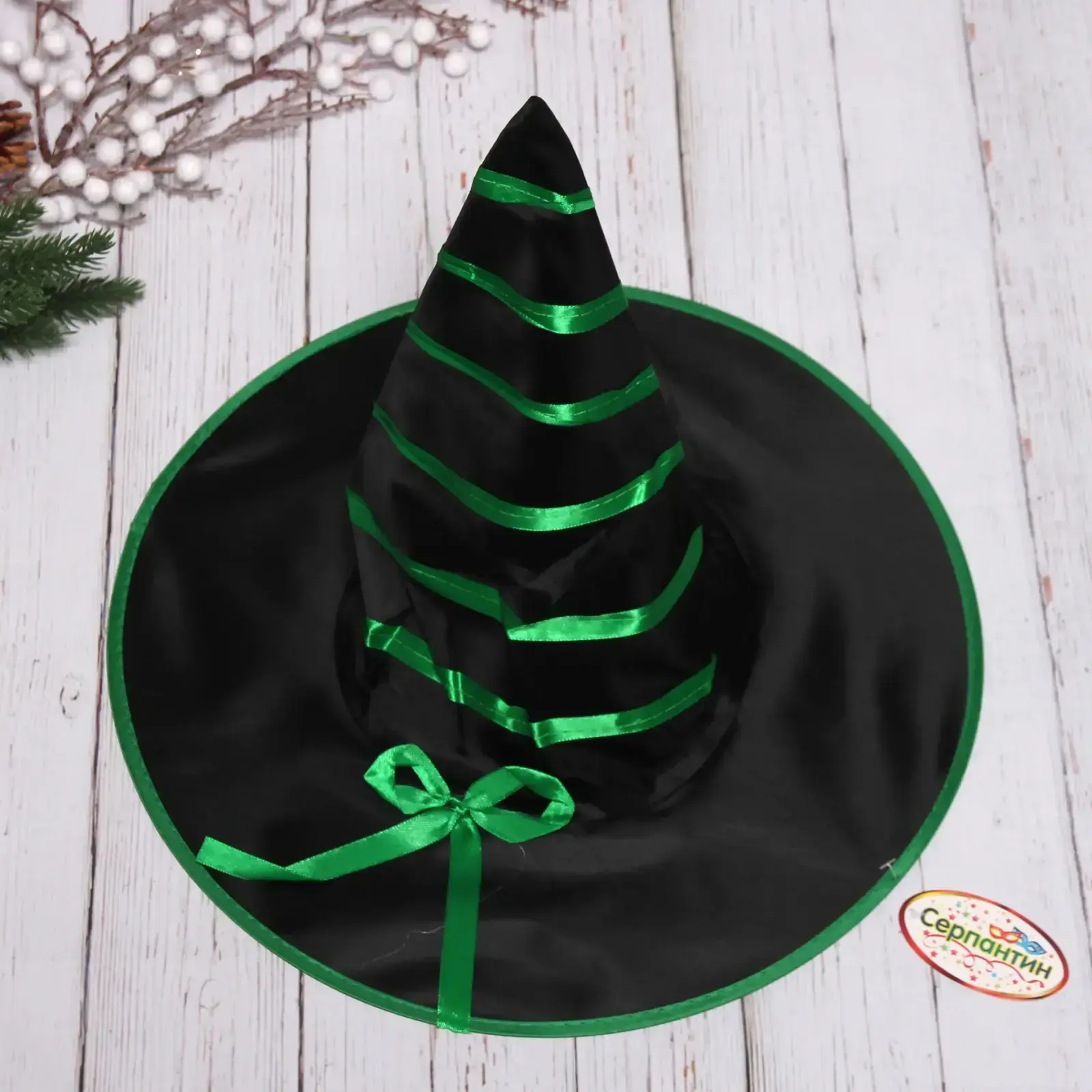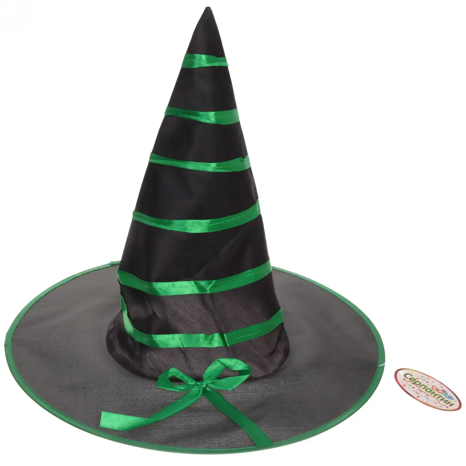 Создайте незабываемый образ на любом карнавальном мероприятии с помощью шляпы карнавальной «Волшебница». Эта шляпа станет отличным дополнением к вашему костюму, добавляя нотку магии и загадочности. Выполненная в черном цвете с яркими зелеными лентами, она привлечет внимание и сделает вас центром праздника.