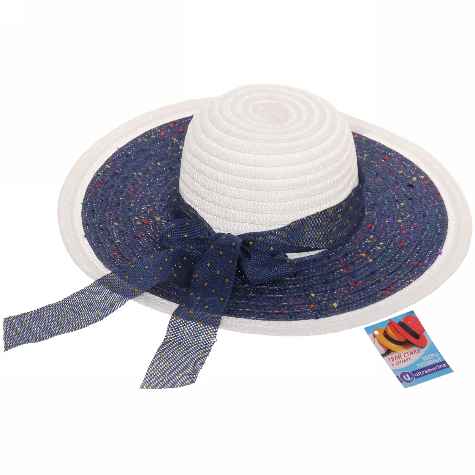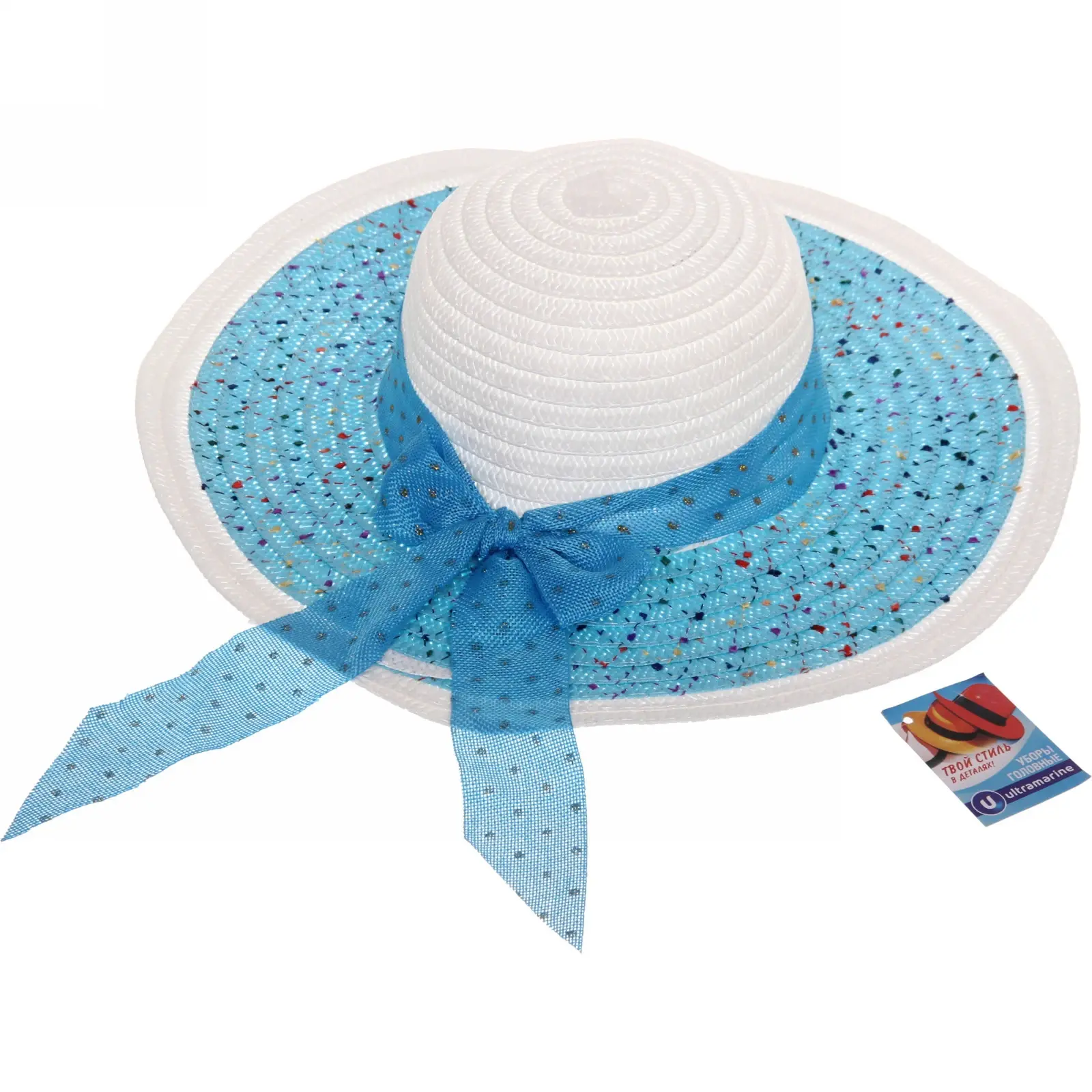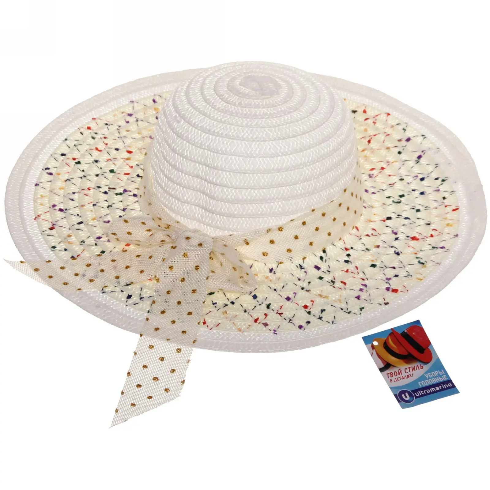 Шляпа имеет классическую форму с круглой верхушкой и широким, слегка изогнутым краем. Ленты с декоративными элементами позволяют закрепить её удобно за ухом. Лёгкая конструкция не утяжеляет голову, а материал легко чистится влагой и мягкой тканью.