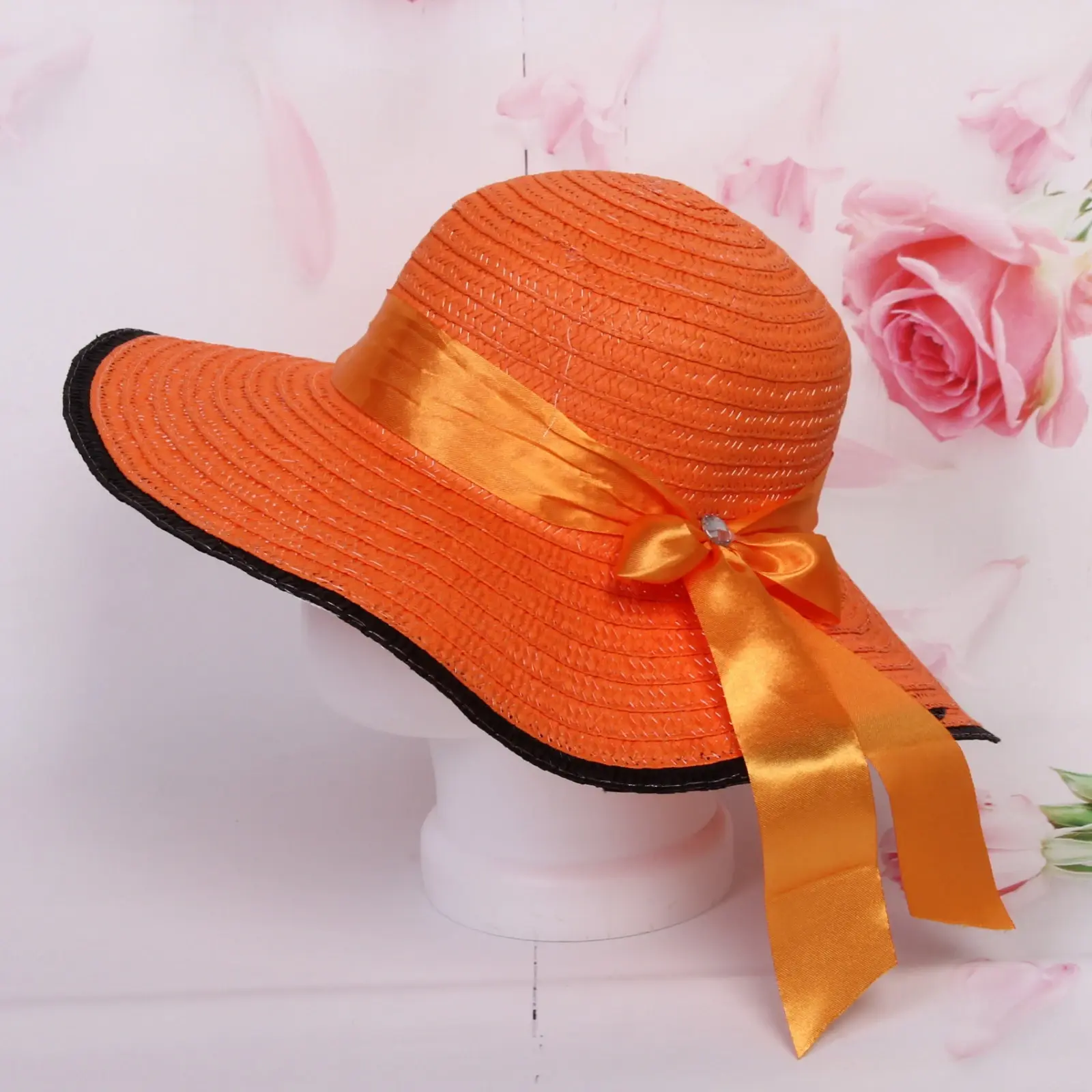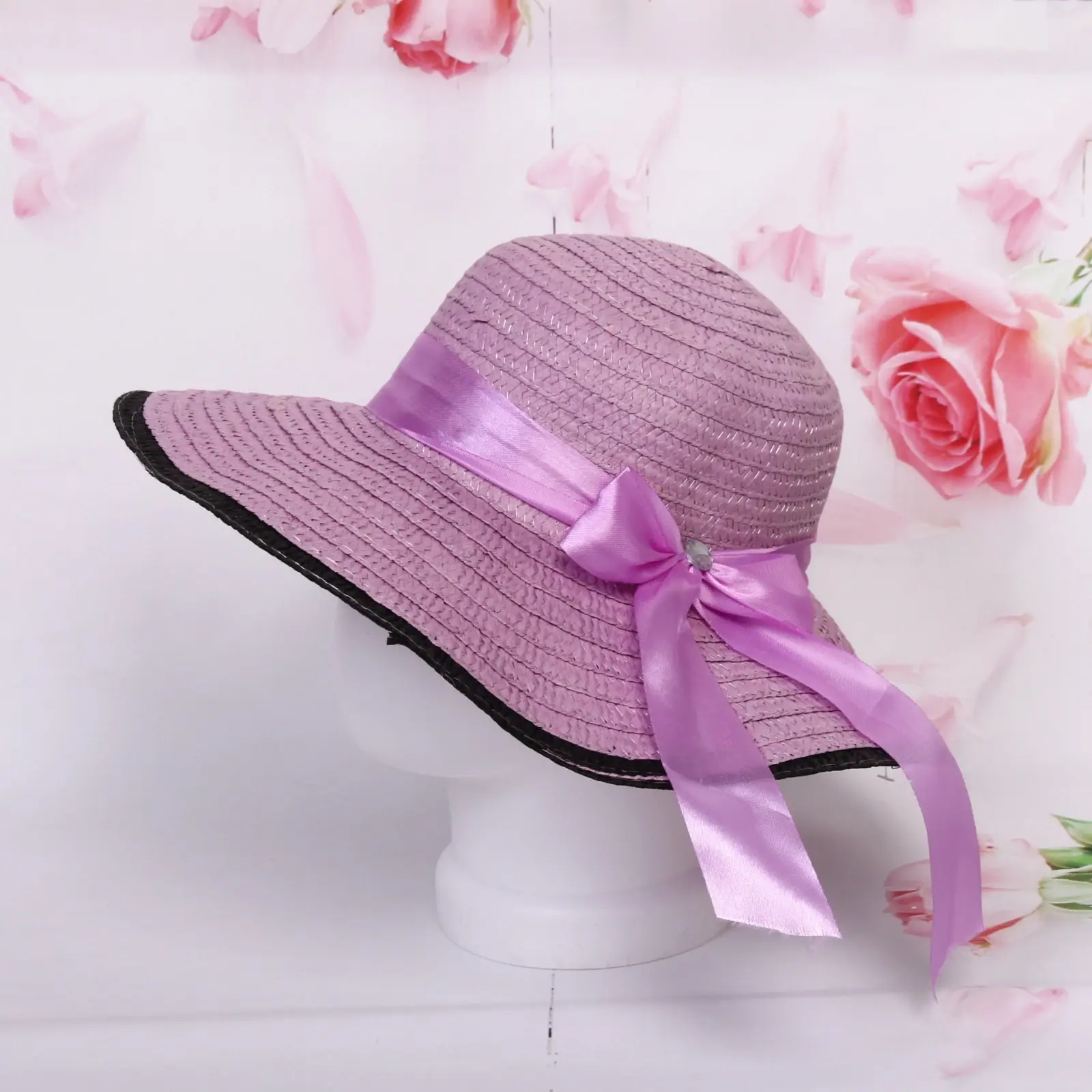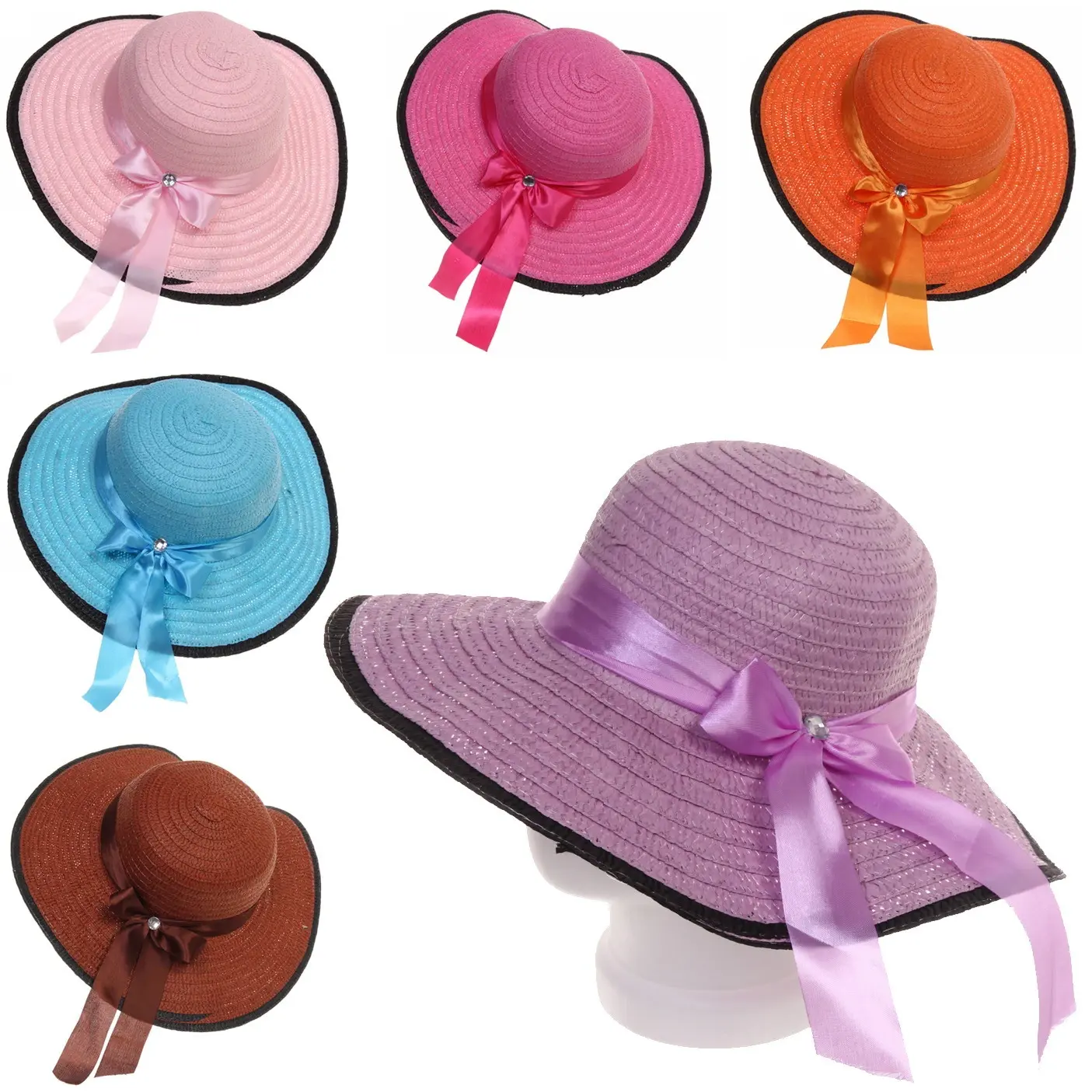 Размер: r58 (обхват головы 58 см). Ширина полей: 11 см. Материал: 100 % полиэстер. Цвет: ассортимент из розового, фуксии, голубого, оранжевого, коричневого и сиреневого.