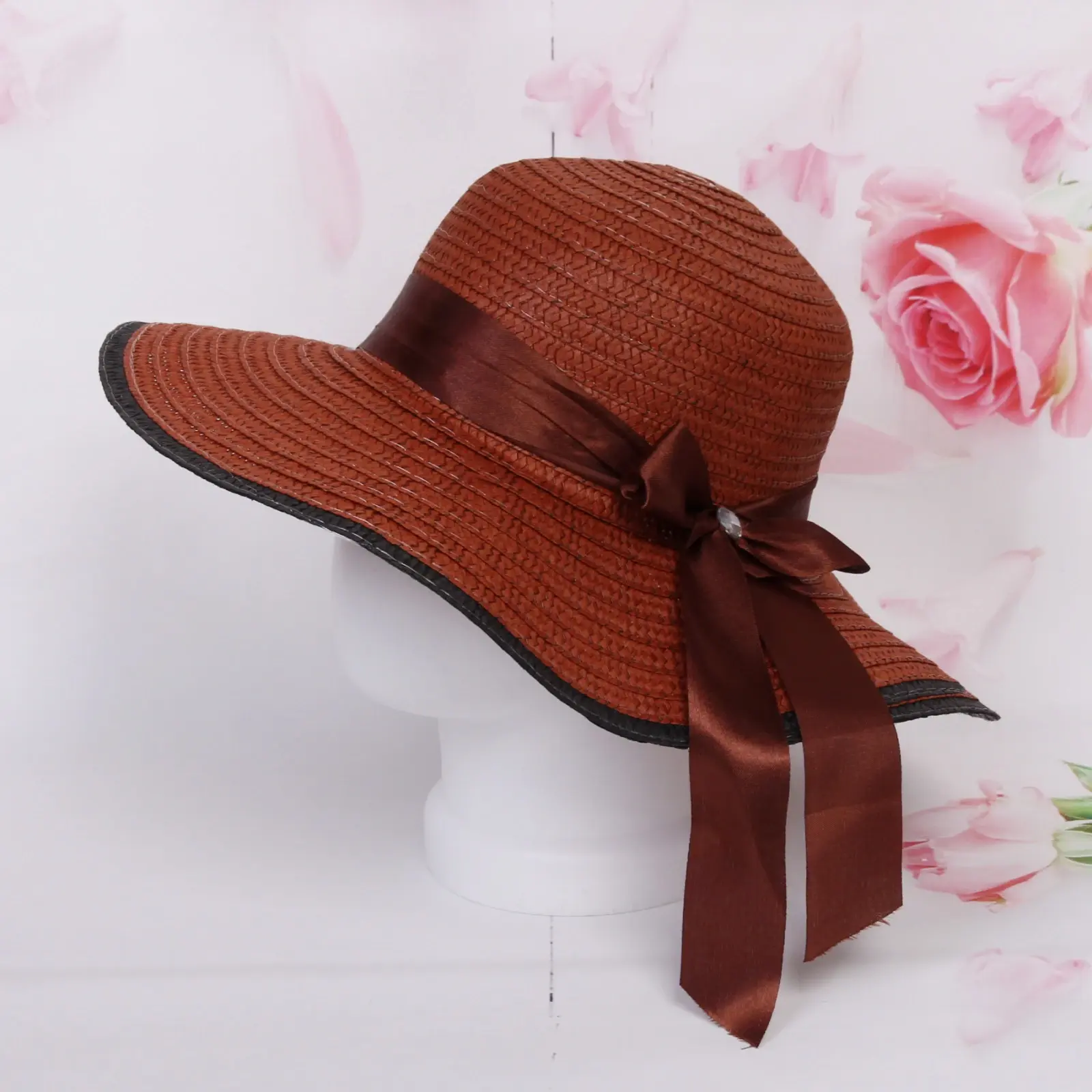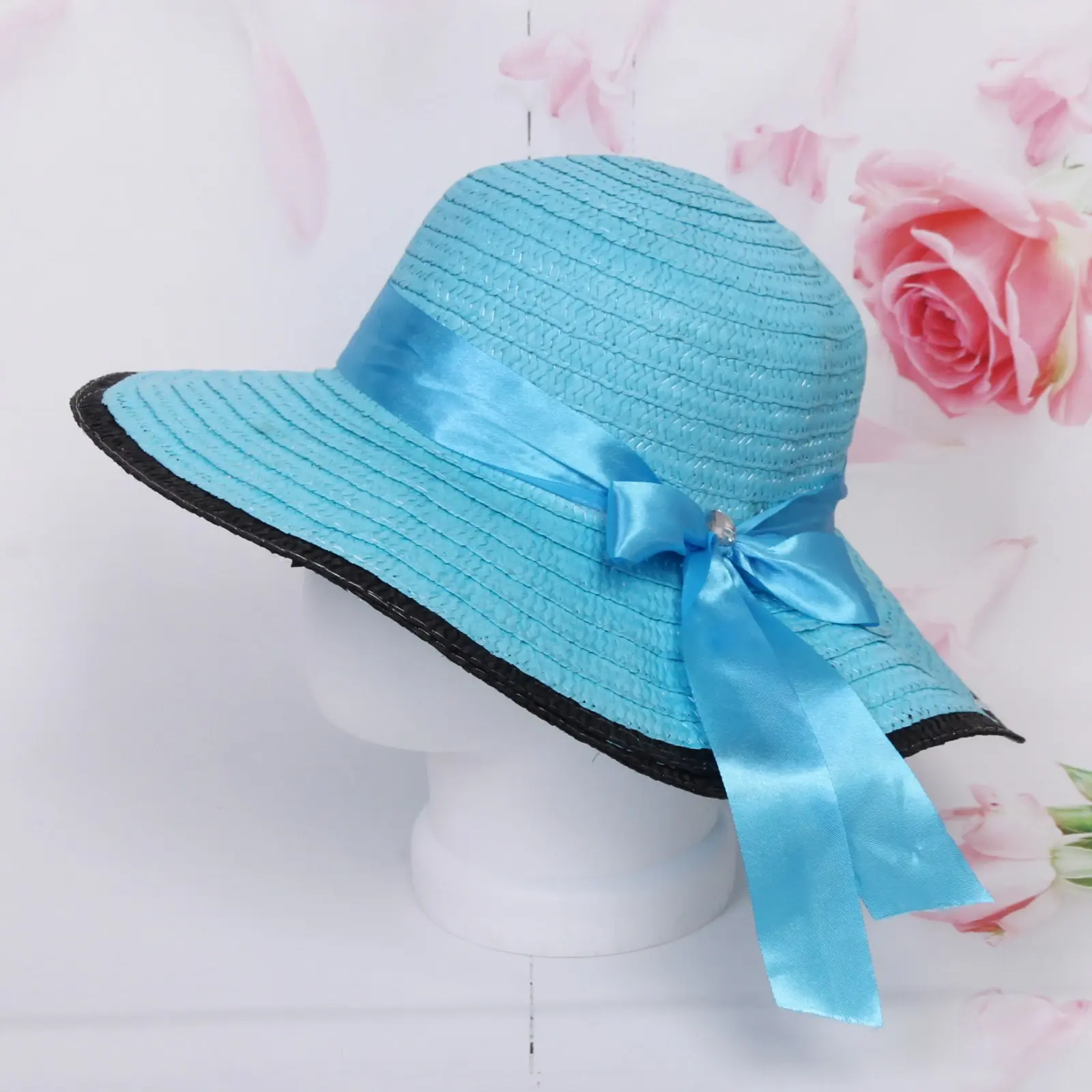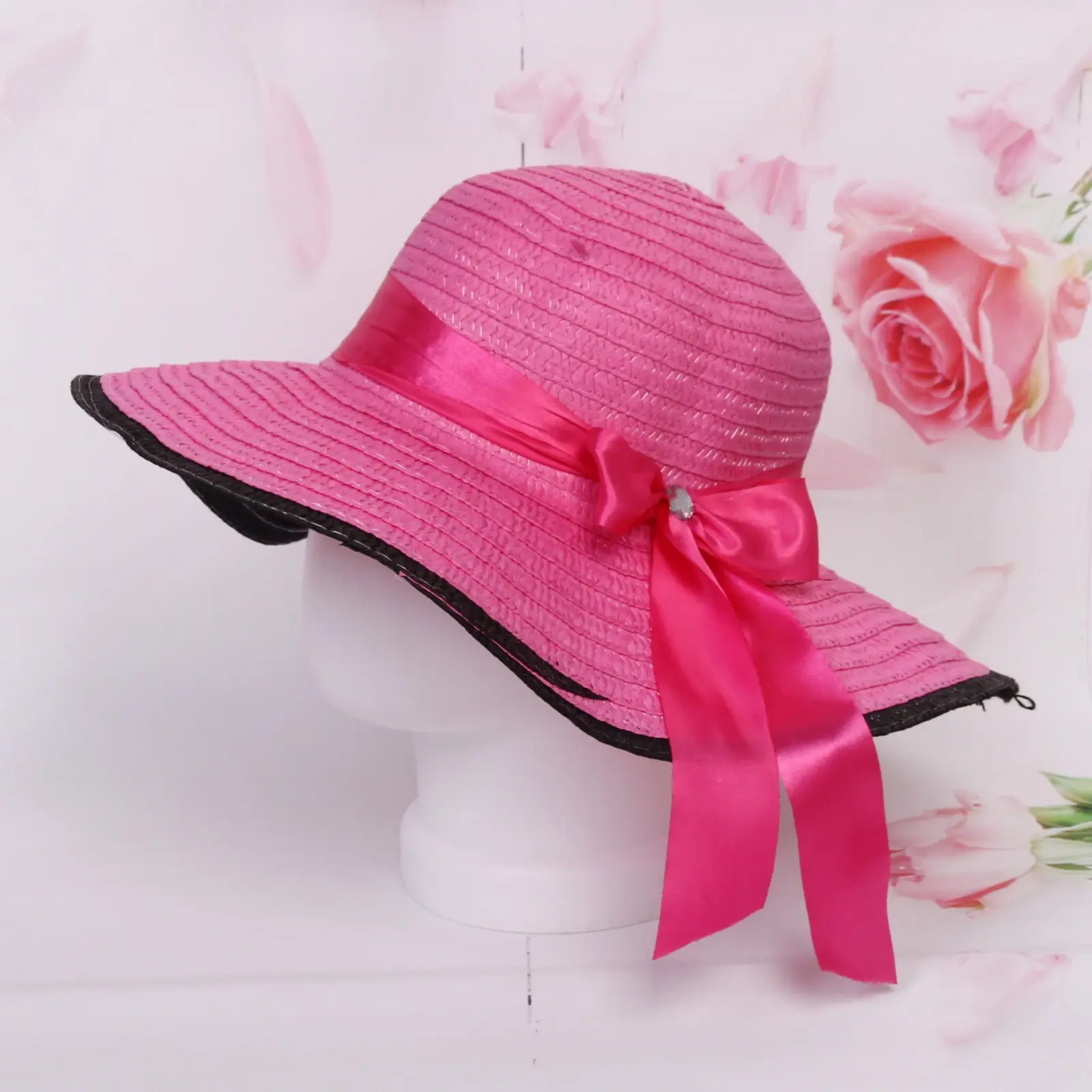 Размер: r58 (обхват головы 58 см). Ширина полей: 11 см. Материал: 100 % полиэстер. Цвет: ассортимент из розового, фуксии, голубого, оранжевого, коричневого и сиреневого.