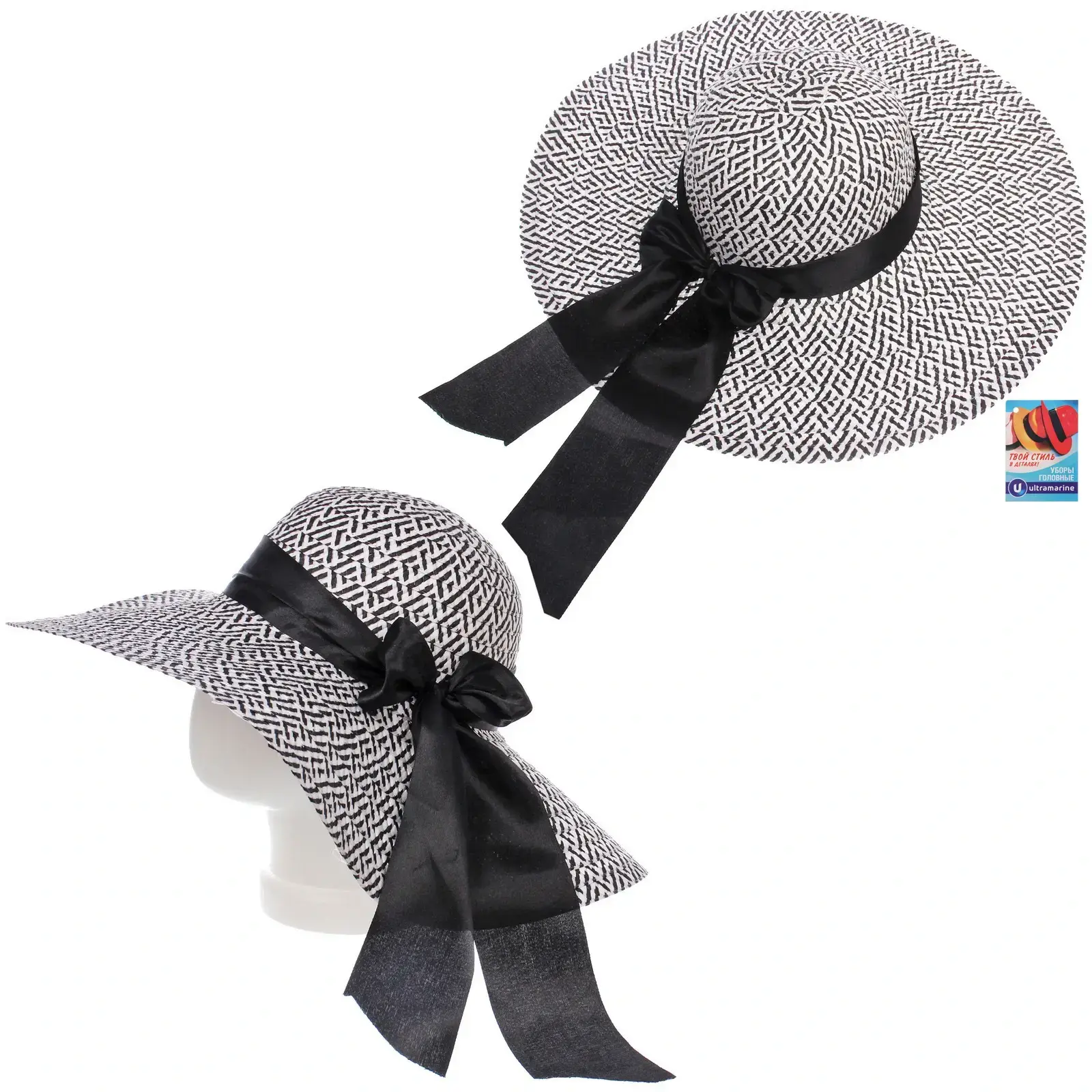 Шляпа женская «TiraMiSu-Шантика», широкие поля, черно-белый узор, р.58