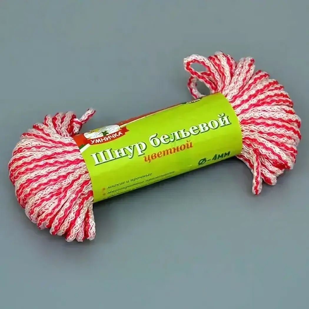 Шнур бельевой цветной, 4мм х 25м, прочный полиэстер, цвет в ассортименте