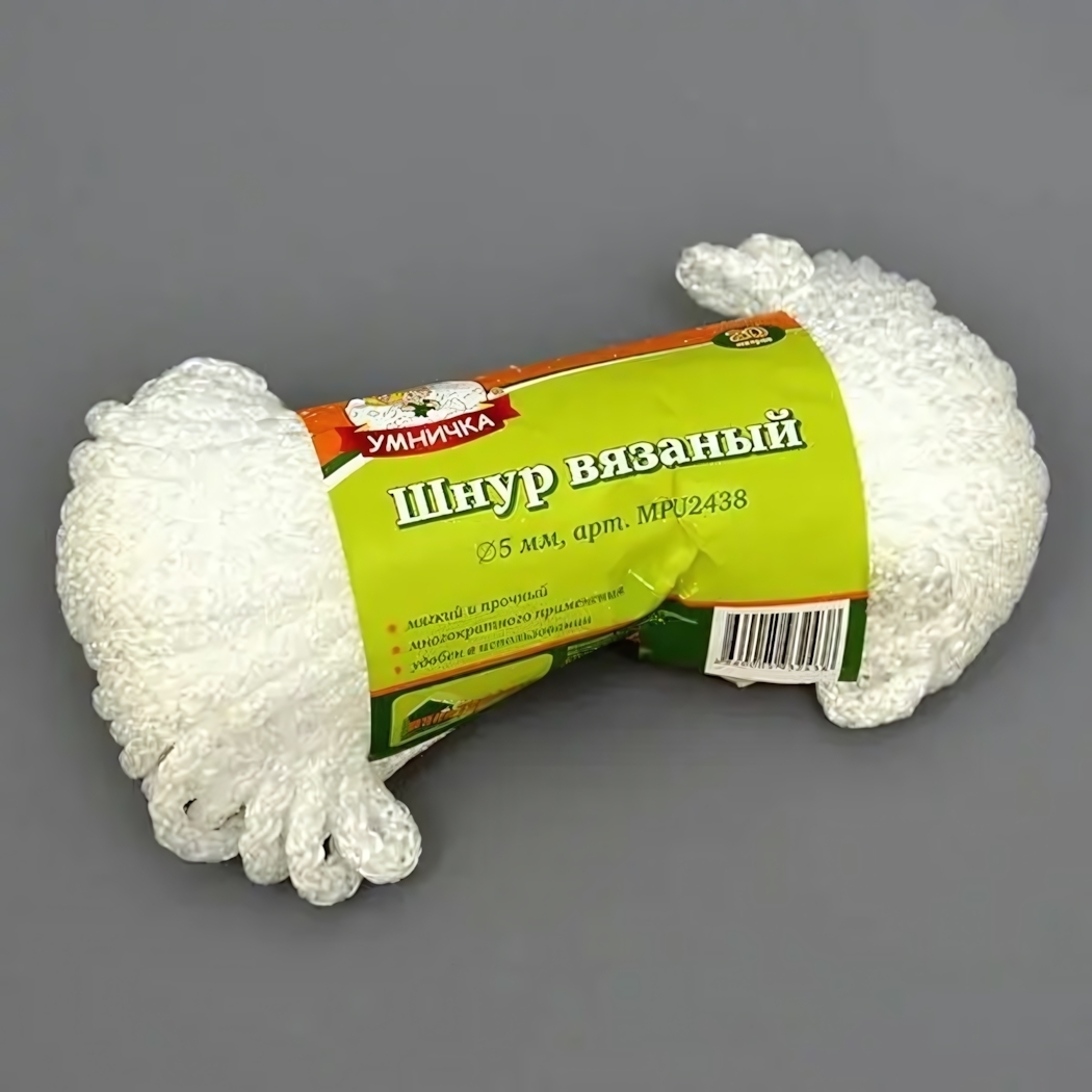 Прочный шнур 'Умничка' станет незаменимым помощником в быту. Его длина 20 метров позволяет разместить большое количество белья, а диаметр 5 мм обеспечивает необходимую прочность.