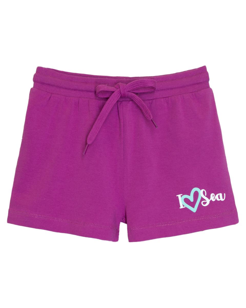 Шорты для девочки Let's Go, фиолетовые, размер 104, хлопок 100%, с надписью