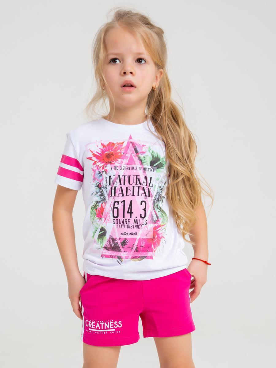 Шорты для девочек 116 рост, 100% хлопок, дышащие, яркий принт, цвет фуксия