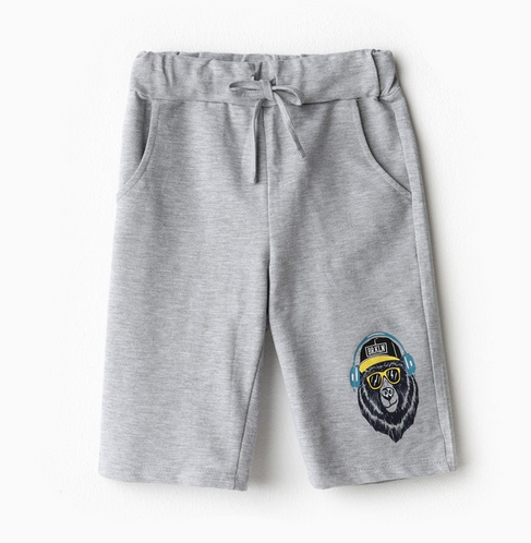 Шорты для мальчиков с рисунком медведя, серый/гризли, 100% хлопок, размер 122-128 см