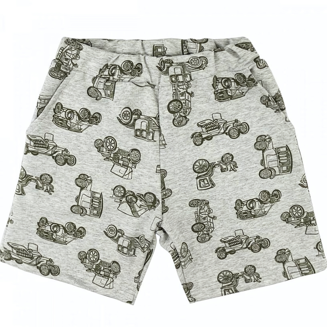 Шорты для мальчиков футер, р.104-110, серый с принтом машин, 100% хлопок, эластичный пояс