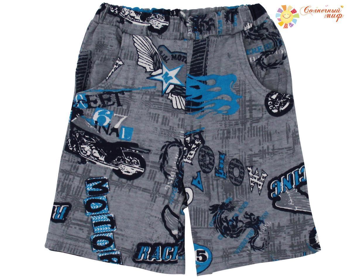 Шорты детские для мальчиков "Солнечный миф", 100% хлопок, размер 98, серый с принтом мото, 2 кармана