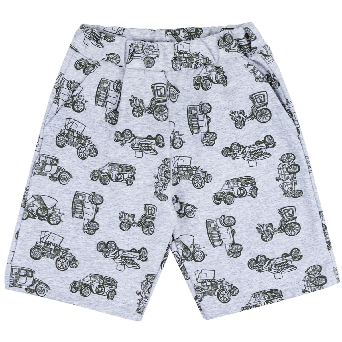 - Цвет: нейтральный серый с принтом в виде контурных старинных автомобилей, который добавит образу оригинальности.