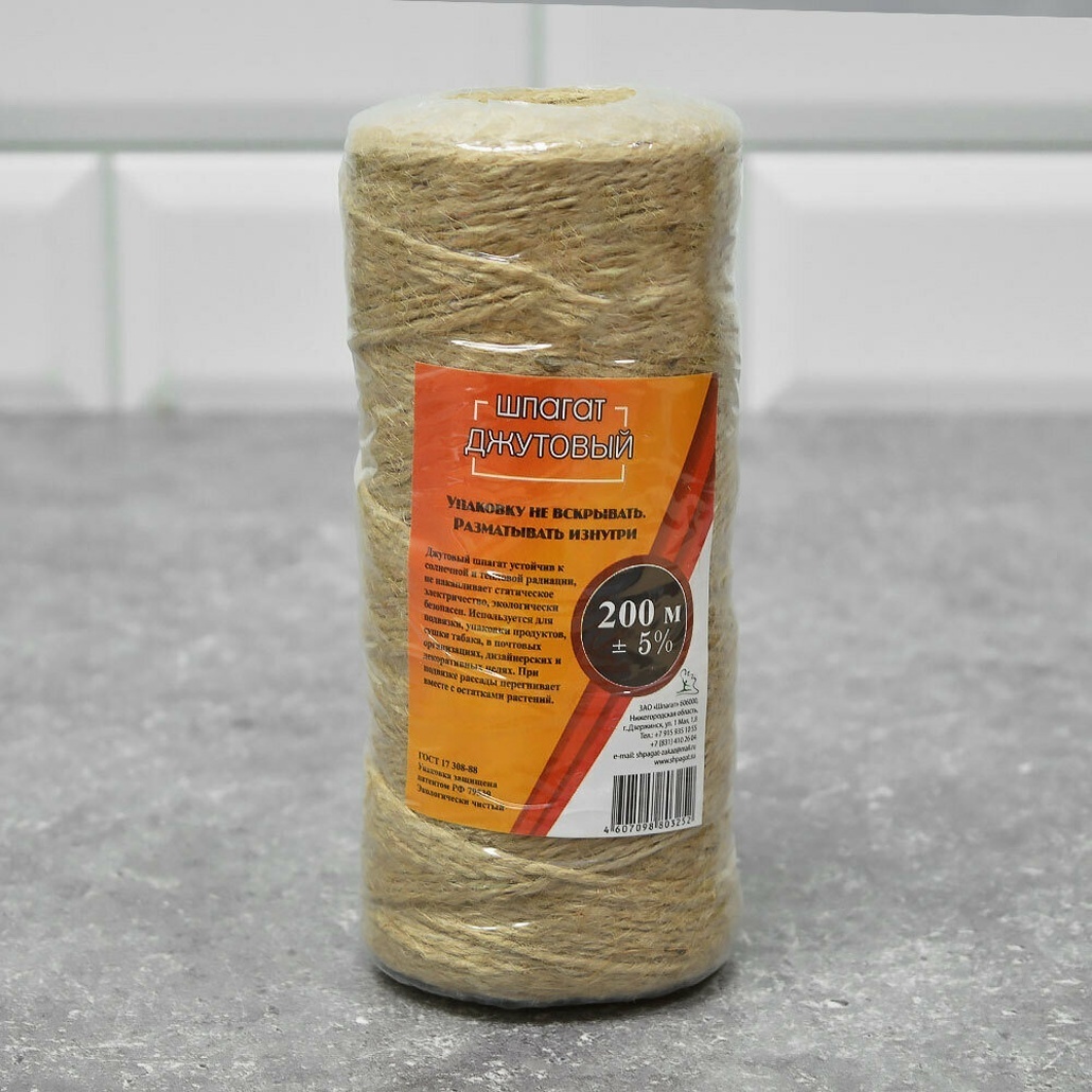 Этот шпагат идеально подходит для упаковки, подвязки растений, закрепления грузов и прочих бытовых задач. Его тонкая структура, сформированная из крученого джута, обеспечивает легкость и удобство при работе, а его универсальность делает его незаменимым инструментом в домашнем хозяйстве и на даче.